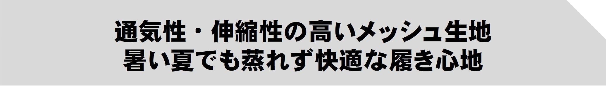 独自のハイブリット生地は全面メッシュで、とても高い通気性と伸縮性を実現。暑い夏でも蒸れず1日中ドライな着心地を保ちます。