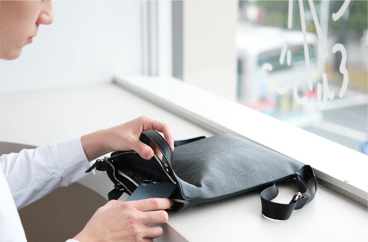 体にフィットして、両手が自由になるうえ、取り出しやすいボディバッグ。