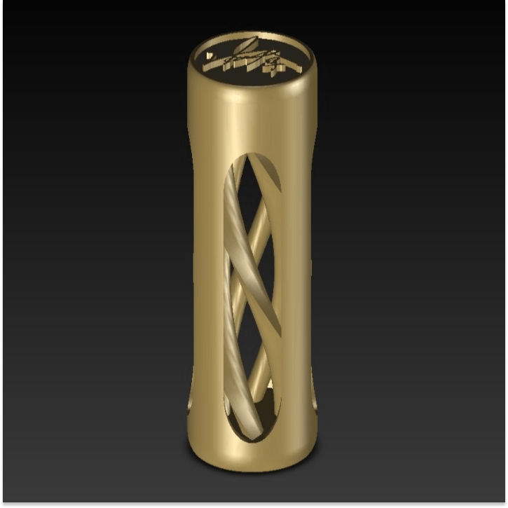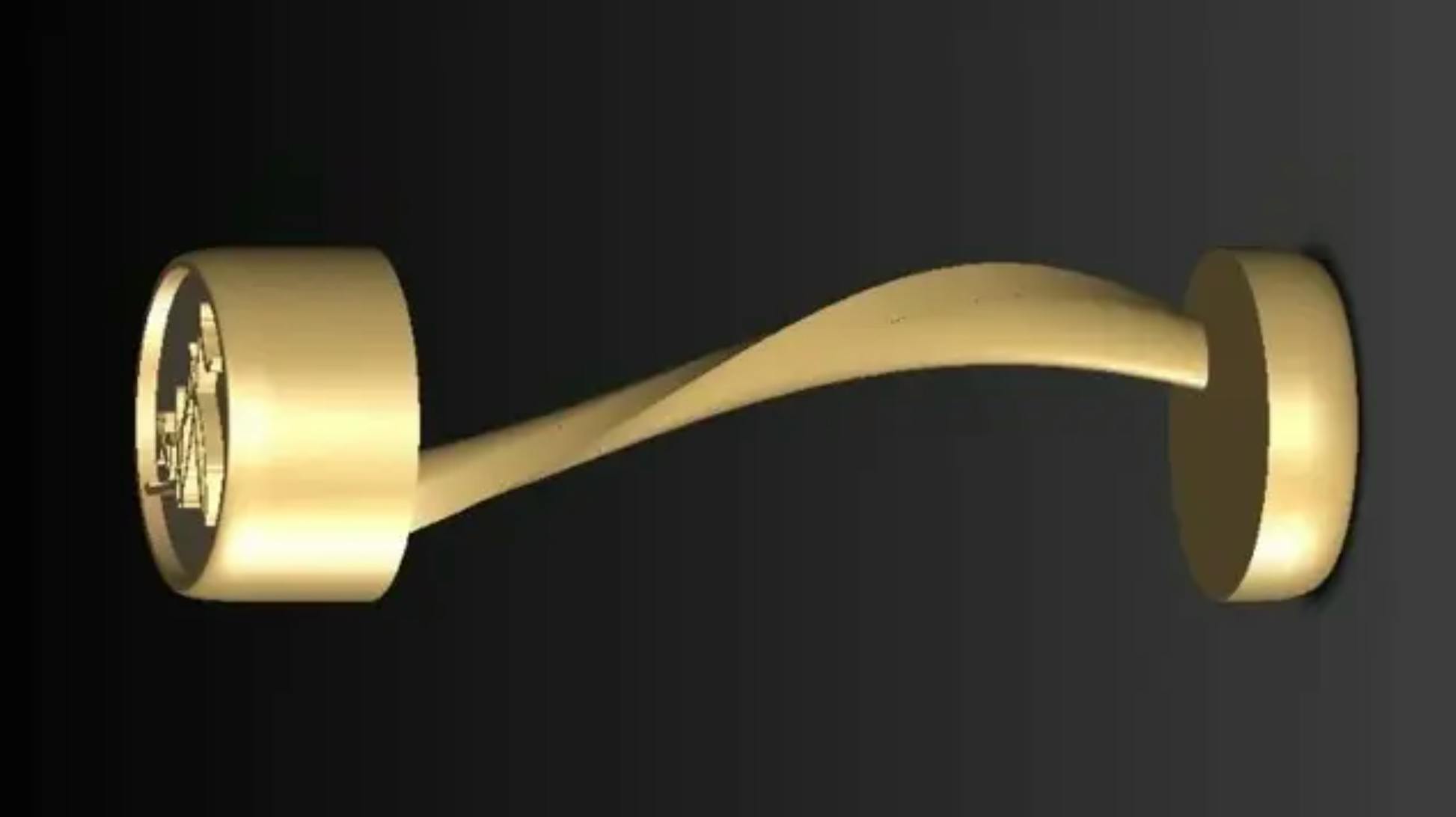 外側にストレートな形状の柱を取り入れ、手に触れる柱の内部に螺旋構造を閉じ込めた形状です。