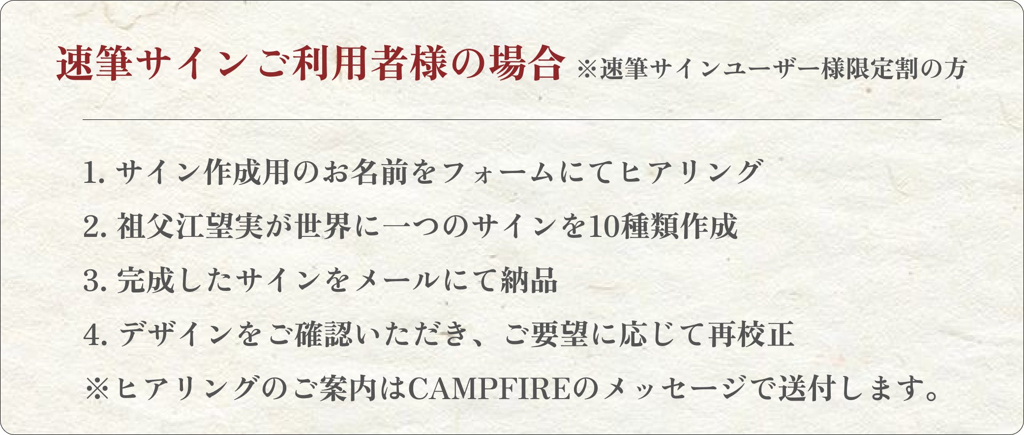 ※速筆サイン(竹プラン以上)を過去ご注文された方限定のリターンです。