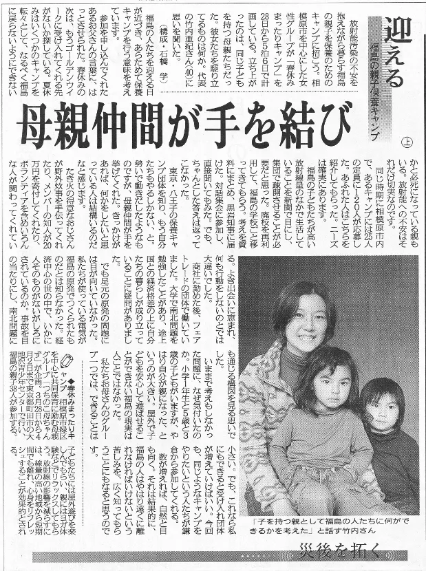 保養キャンプに訪れる母達は、地元の親戚や友人に内緒で逃れるようにして神奈川に来ます。