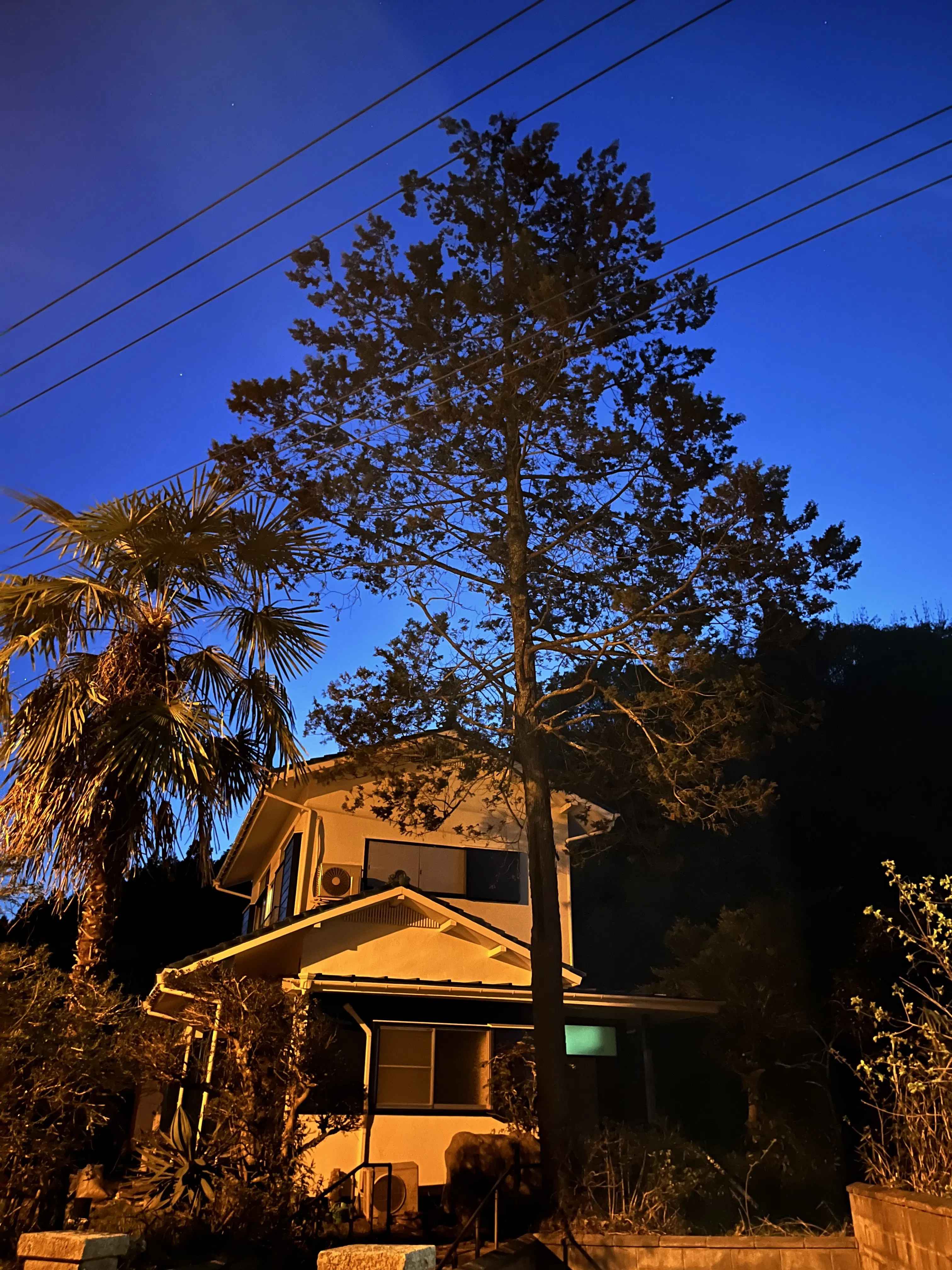 家の前には10メートルはあろうかと思われる大木があり、冬にクリスマスライトをつけようかという楽しい企画もあります。