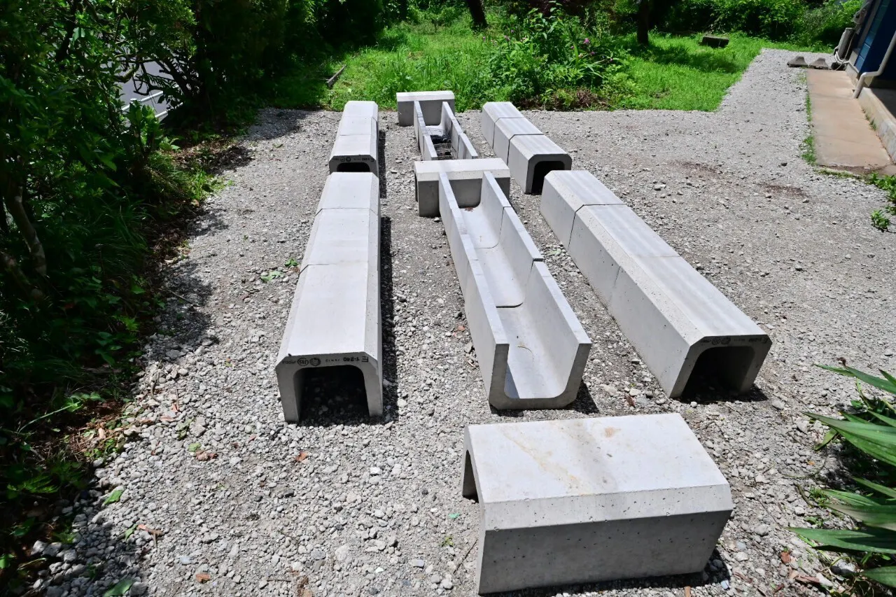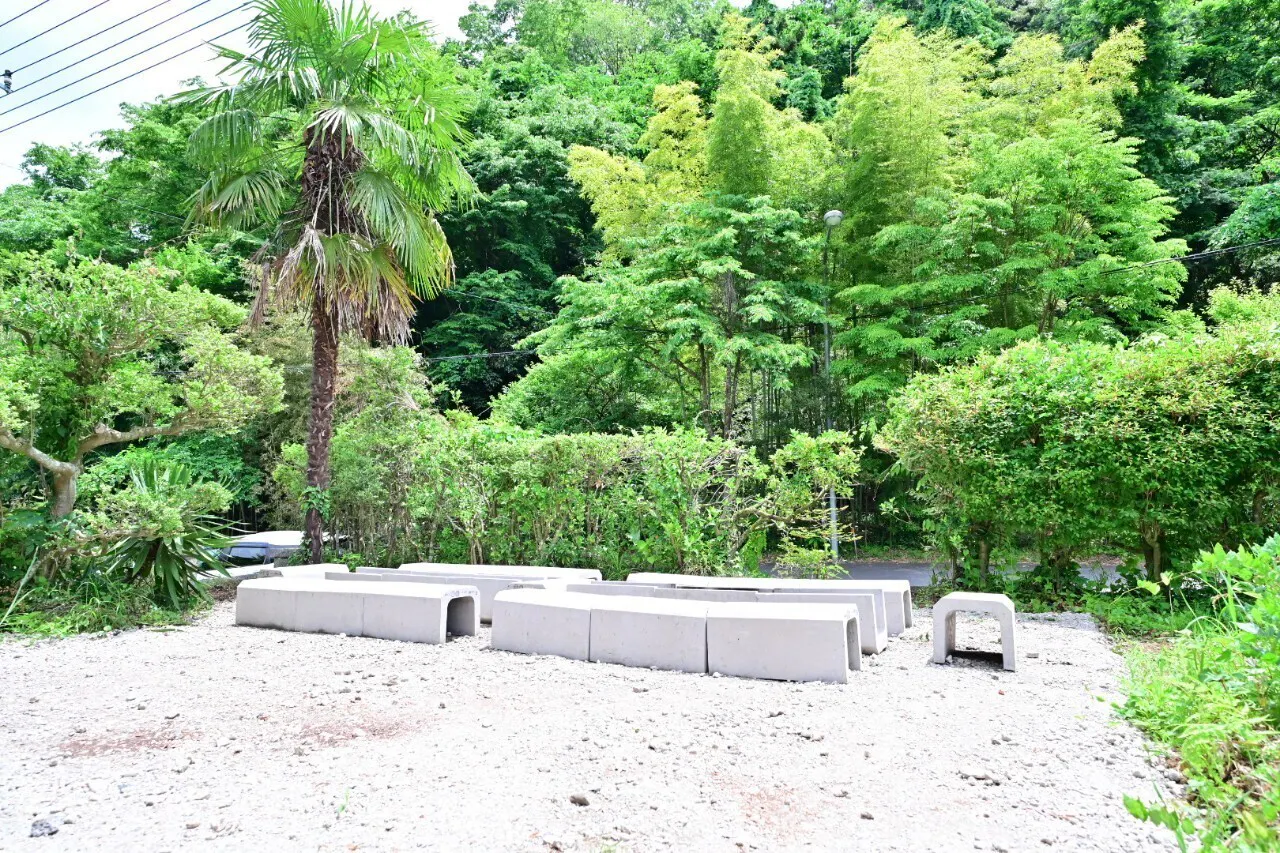 U字溝に炭を置き、網をかぶせるだけでBBQの用意ができるシンプルな作り。