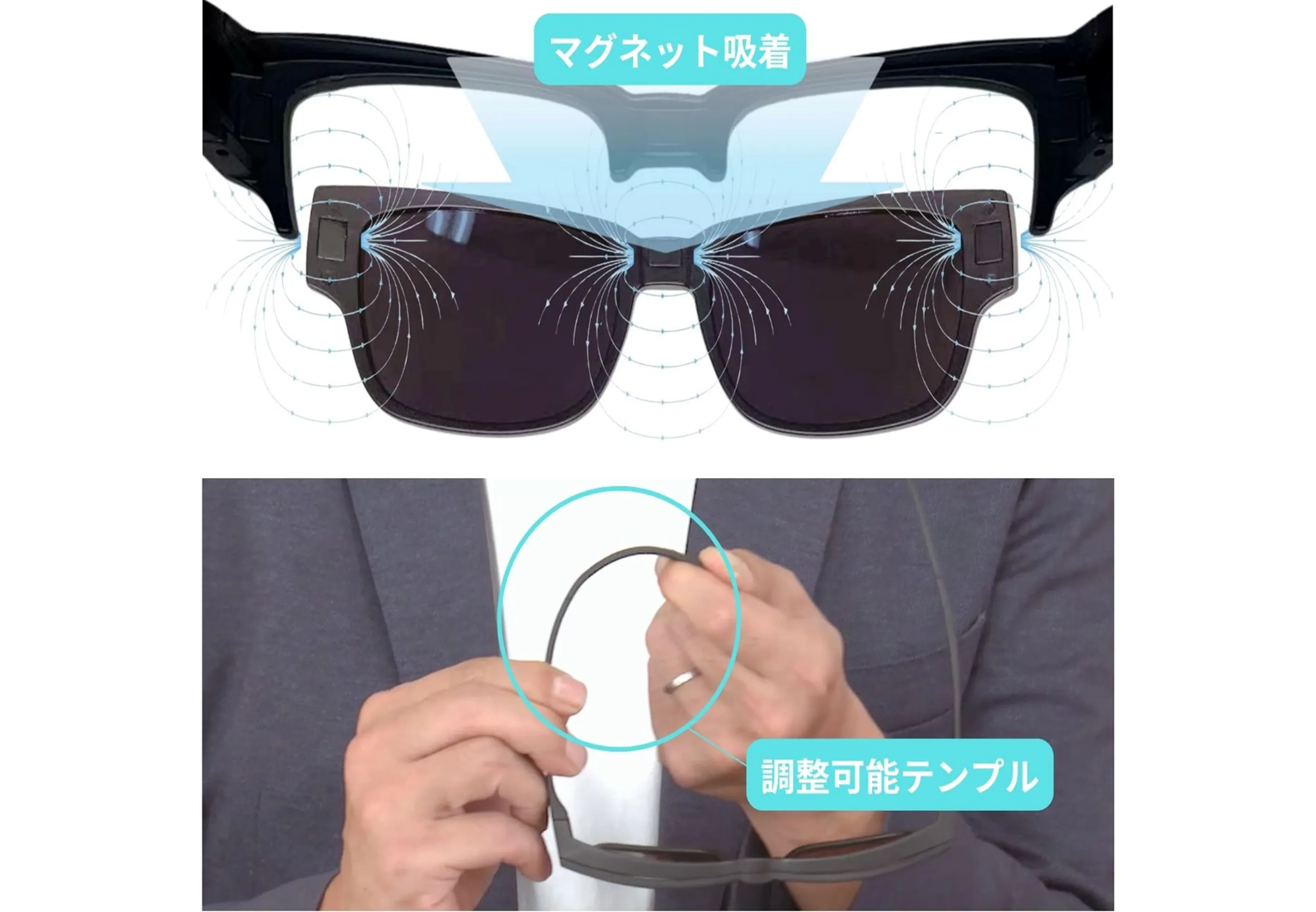 マグネットと調整可能テンプルで