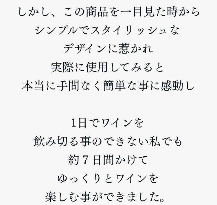 ◼︎ワインの味の変化については、感じ方に個人差がございます。その為、使用感に関する理由でのご返品・ご返金はご遠慮くださいませ。