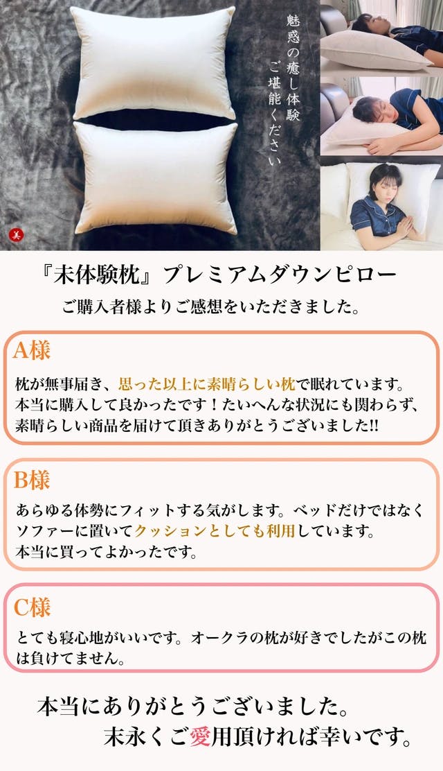 多くの方に本物の羽毛枕を体感してほしい、未体験枕の凄さを知ってほしい気持ちからクラファン企画を立ち上げました。