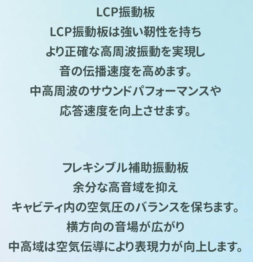 ドライバーユニット:10mm ダイナミックドライバー、6.8mmパッシブユニット