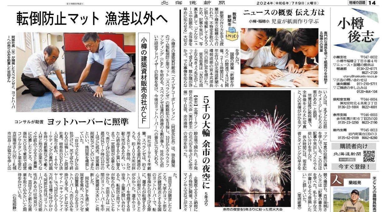 かねてより漁港では、船揚げ場(スロープ)が藻で滑べりやすく、これが原因で怪我をする人が後を絶たず、また足元が安定しないために作業の効率が悪かったりと、大きな悩みを抱えていました。そうした悩みを解消しようと私たちが開発した転倒防止用ゴムマット「新スベランゼ」が、いまや多くの北海道の港に設置され、たくさんの港や漁師さんから喜ばれています。