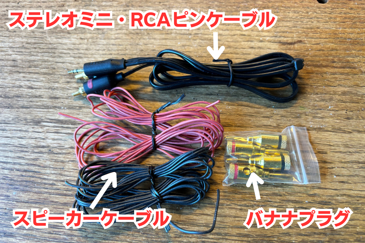 ・スピーカーケーブル:1.5M × 4本(赤・黒各2本)