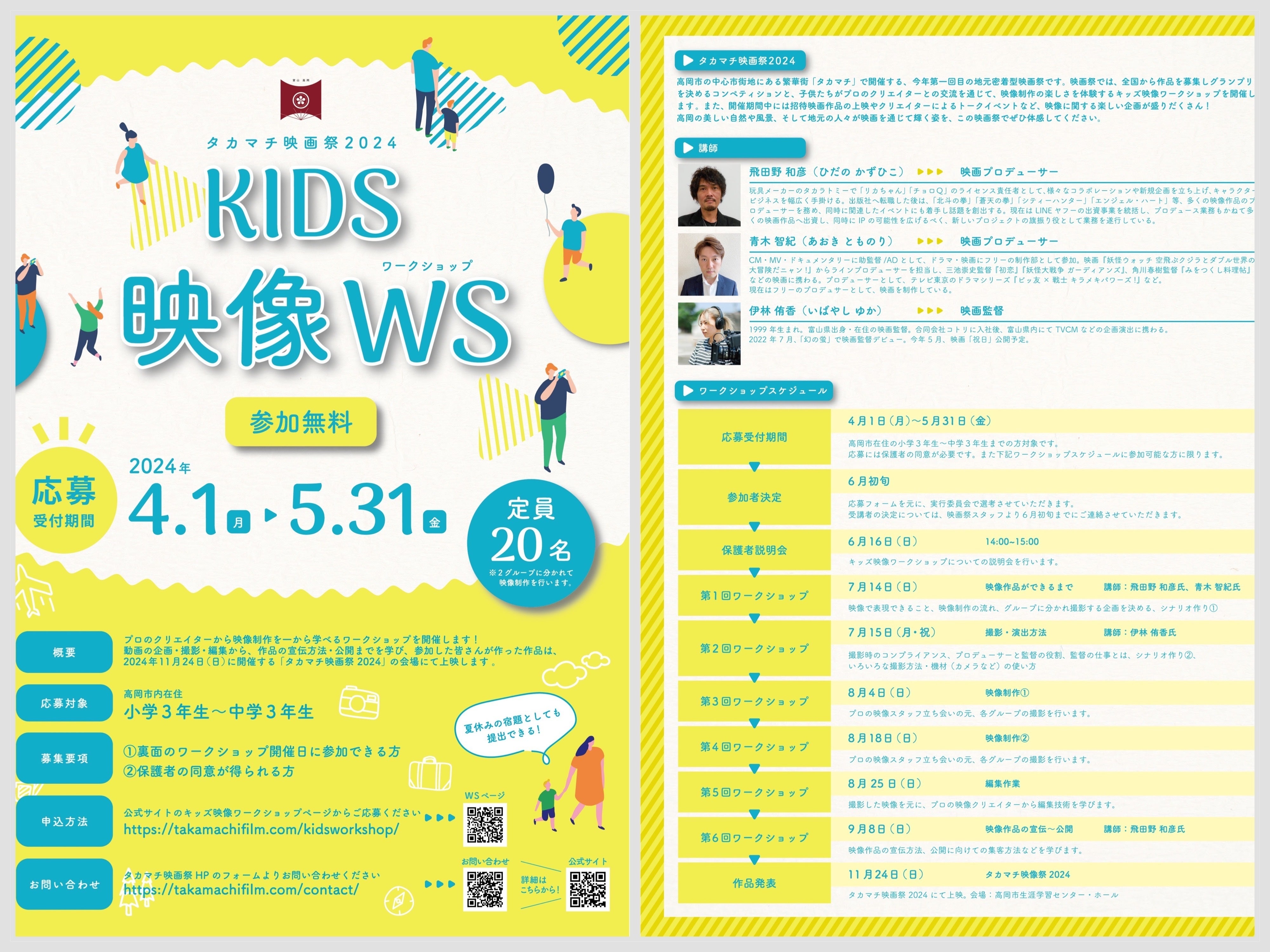 2025/11/17 23:32CAMPFIREにて「【富山県高岡市で初開催】未来のクリエイターを育てるタカマチ映画祭を応援したい!」にご支援くださいました皆さま、あらためまして心より御礼申し上げます。いよいよ今週末、「タカマチ映画祭2025」を開催いたします!今回は2日間・2会場での開催となります。〇高岡市生涯学習センター・ホール:11月22日(土)〇御旅屋座 会場:11月23日(日)本日は、11/22(土)Day1の見どころをご紹介します!①コンペティション「高岡SNS部門」入選5作品上映 ~ グランプリ発表高岡の魅力を“3分未満”のショートショートで切り取った作品群です。●上映作品(入選5作品)『こんぶの町』 監督:肥後瑞希『高岡、ツッコミどころが多すぎる件』 監督:平井裕貴『おちこち』 監督:上田伸也『TAKAMACHI SHARK TOWN』 監督:AMI YAMAZAKI『これもタカオカ Great local legends(偉大なる地方の伝説)』 監督:やまもと高岡というまちを、ユニークな視点で切り取った多彩な作品が揃いました。②キッズ映像ワークショップ作品発表大人たちが自分たちの街の魅力を発信していくと同時に、子どもたちにも地域への愛着を育み、映画制作の楽しさを伝え、未来のクリエイターを育成する——タカマチ映画祭の柱となるプログラムです。高岡市内の小学4年生〜中学生が参加し、富山県出身の映画監督・坂本欣弘氏の指導のもと、企画・撮影・編集までを実践的に学びました。Day1では、子どもたちがつくり上げた2本の作品を上映します。③コンペティション「短編部門」入選5作品上映 ~ グランプリ発表全国から集まった104作品の中から選ばれた入選作5本を上映し、グランプリを決定します。●上映作品(入選5作品)『I am me』 監督:相馬雄太『ルサンティール』 監督:小原正至『ウチの宇宙は三角形』 監督:門田 樹『Paradise Lost』 監督:鈴木剛志『アカリとマキコ』 監督:吉田岳男まだ見ぬ才能の原石たちと出会えるプログラムです。ぜひスクリーンで、その一歩目を見届けてください。■「高岡SNS部門」審査員:Masafumi Kashi、キバちゃん、Leokan■「短編部門」審査員:滝田洋二郎、菱川勢一、加藤拓■キッズ映像ワークショップ作品発表 ゲスト:坂本欣弘監督■11月22日(土) Day1 タイムテーブル12:00 開会~オープニング12:20 コンペティション「高岡SNS部門」入選5作品上映~グランプリ発表13:30 キッズ映像ワークショップ作品発表15:00 コンペティション「短編部門」入選5作品上映~グランプリ発表18:00 閉会■チケット:前売 1,000円/当日 1,500円(高校生以下無料)■Day1 チケットはこちらから皆さまからのご支援があって、ここまで準備を進めることができました。実行委員会一同、スクリーンの前でお会いできることを、心より楽しみにしております。 もっと見る