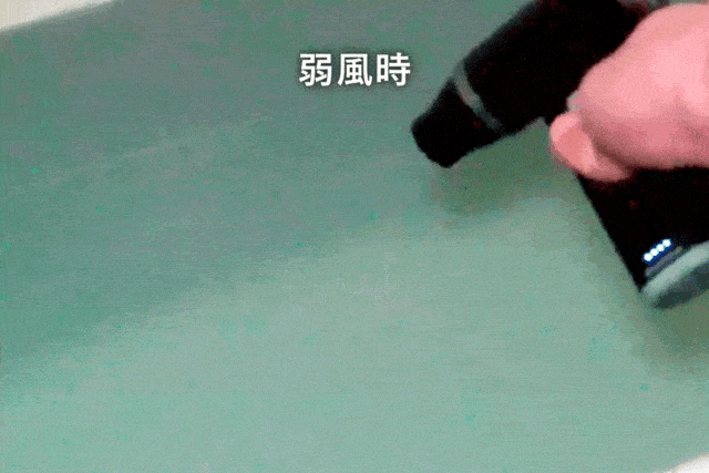 ご覧いただいた通り、少しスライドすると弱風、大きくスライドすると強風を作り出すことが可能です。