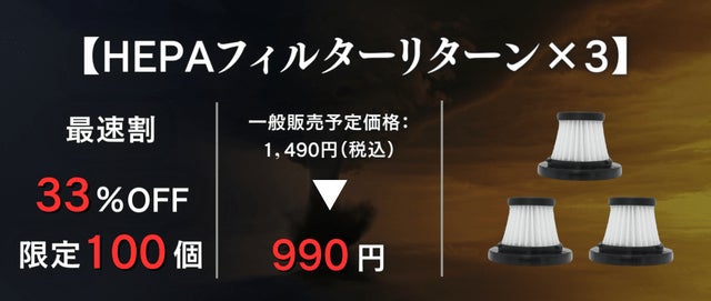 A:はい、必要ありません。ステンレスフィルター及びHEPAフィルターを搭載しており洗って乾かせば繰り返し使用できます。但し、使用と洗浄を重ねると汚れや破損してしまうケースも考えられます。HEPAフィルターに関しては今回個別でリターンに追加いたしましたので、ご支援を検討いただけますと幸いです。ステンレスフィルターに関しては当面の破損は無いと考えられますので、今後一般販売した際には個別にご購入いただけるよう検討・準備をしてまいります。