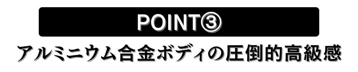 ご覧いただいて分かる通り、アルミニウム合金にアルマイト処理が施されており、美しい光沢を持った洗練されたデザインとなっております。