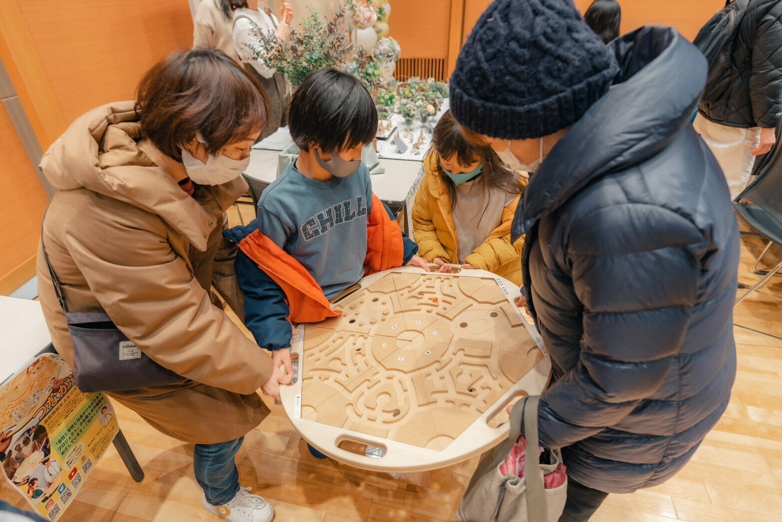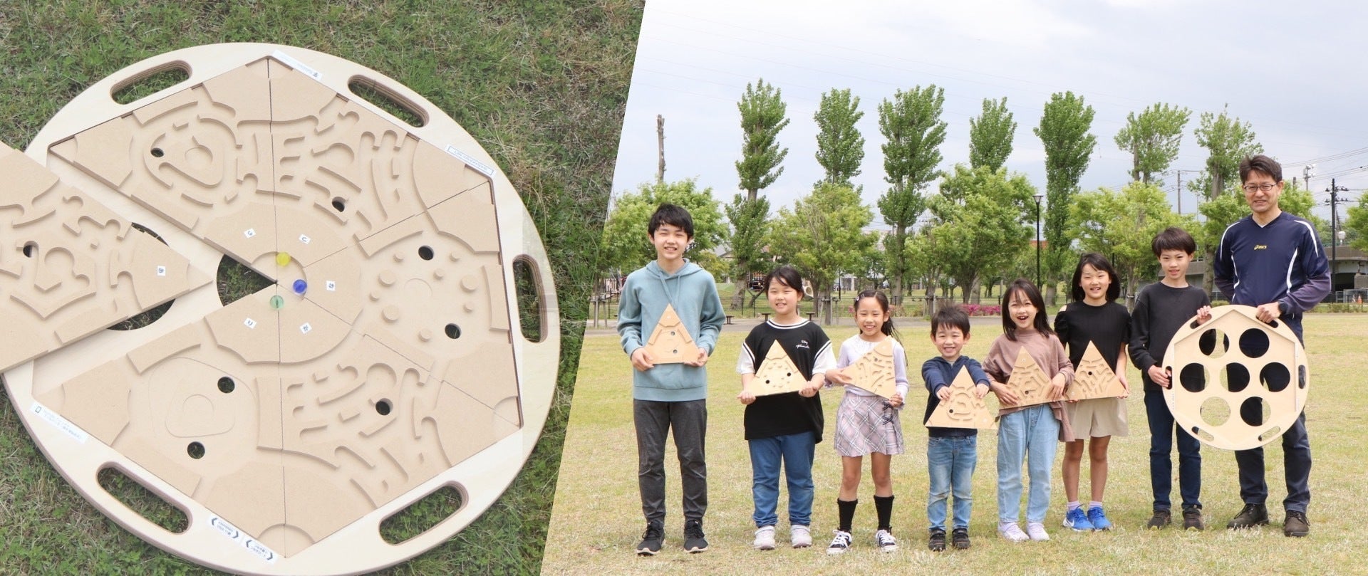 自社開発した【つなが道(R)ロード】は、チームで連係して取り組む「ビー玉転がし迷路パズル」。子どもから高齢者までを対象に、遊びながらチームビルディングを学ぶ場面で活用しています。