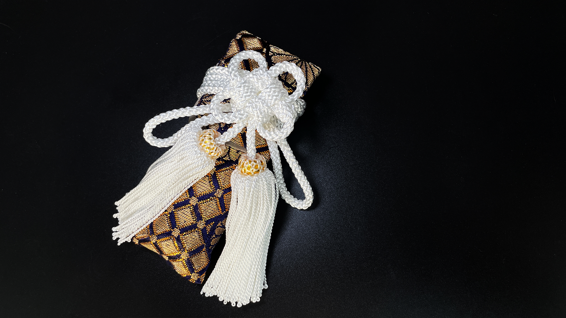本物の日本刀を入れた時と同じ結び、そして懐剣を入れた際に見られる菊結びを再現しています。