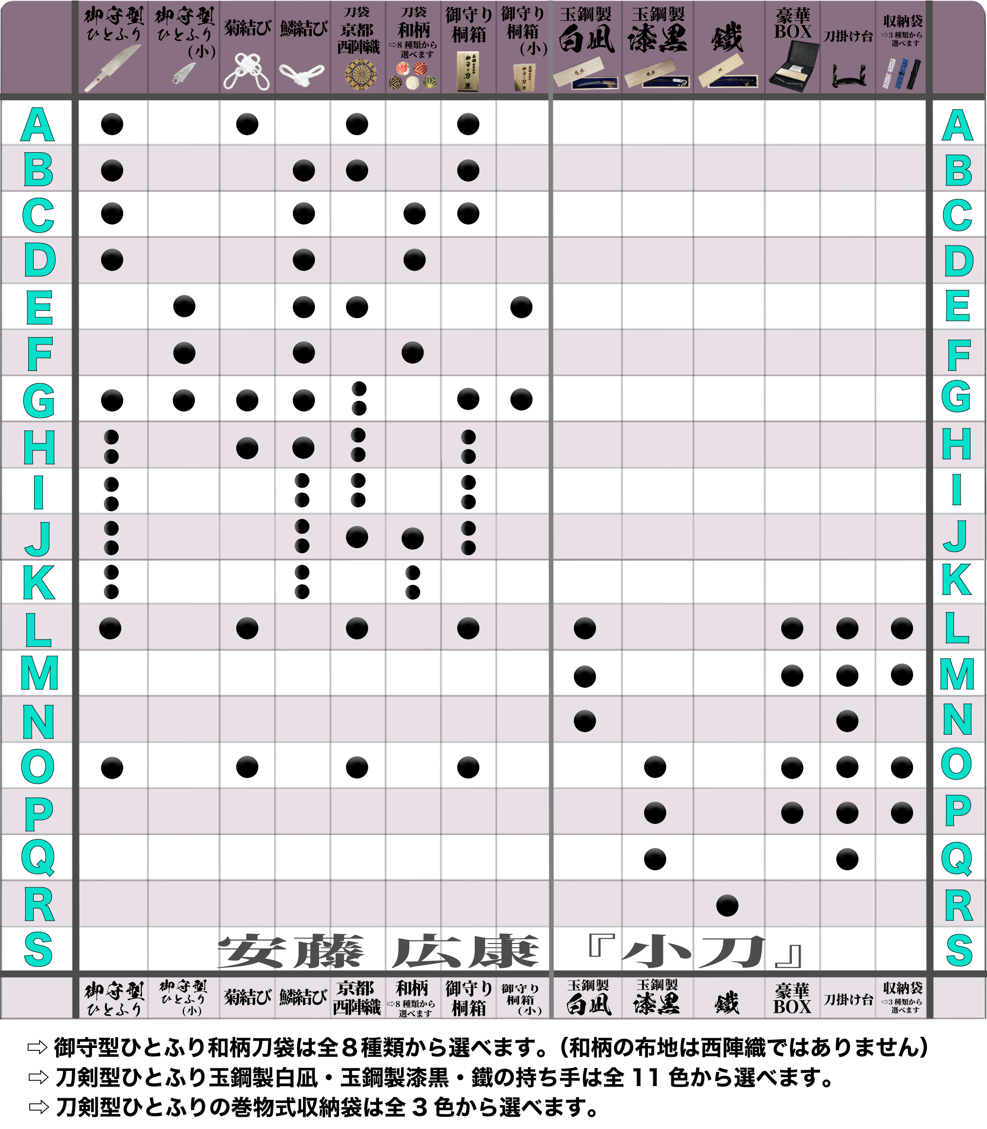 ・その他、選べる8種類の伝統的な和柄刀袋(こちらは西陣織ではありません)から、