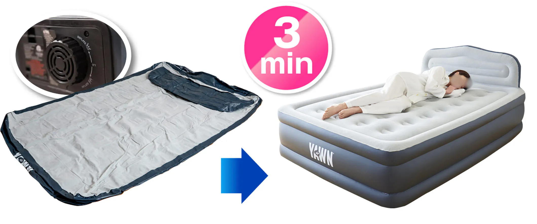 たった3分でエアーベッドの出来上がり
