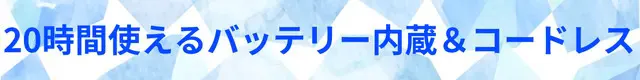 10000mAhの大容量モバイルバッテリーが内蔵し、最長20時間、最大風量でも9.5時間稼働します。