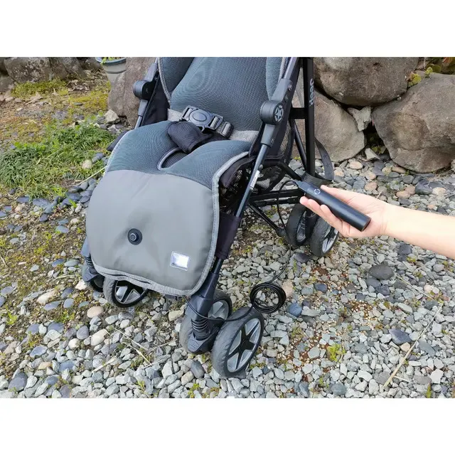 今回の改良によって、ベビーカーでは、コードが引っかかる心配もなく、使用できます。車内では、車内のどこにチャイルドシートをおいても、ファンを稼働させることができます。