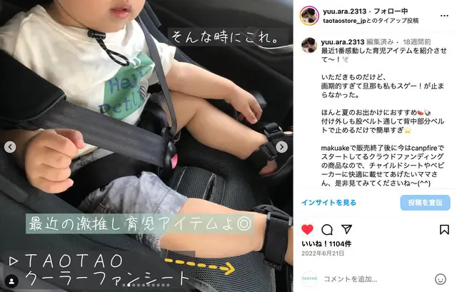 ベビーカー・チャイルドシートに付属しているインナークッション等を利用している場合には取り外し設置して頂くか、TAOTAOクーラーファンシートと併用する場合には、お子様の安全を最優先にご利用をお願いいたします。