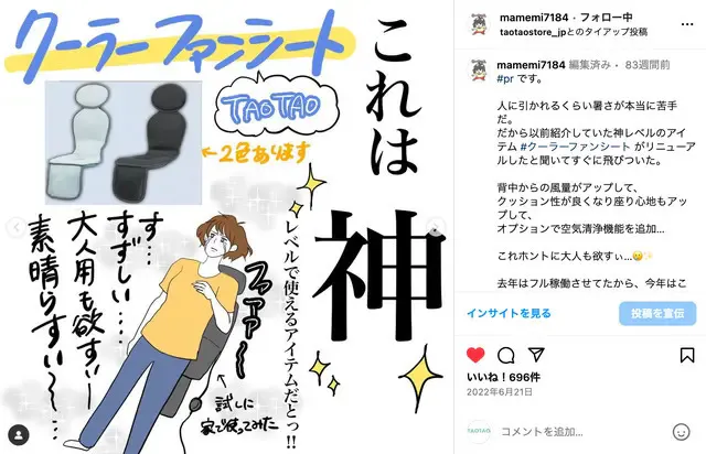 商品名:TAOTAO クーラーファンシート