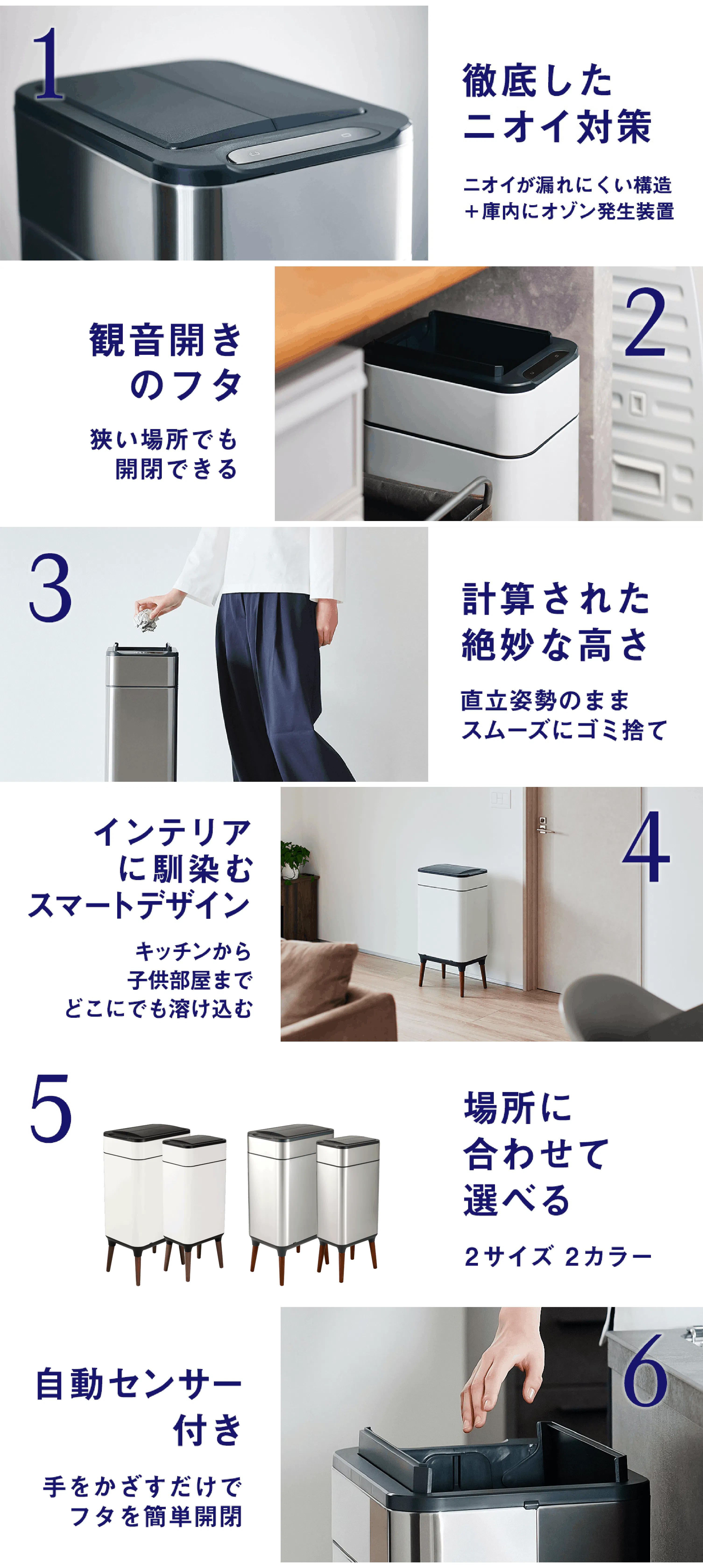 ニオイを漏れにくくする開閉スピードと開放時間、またストレスなく捨てられるセンサーの感知時間にもこだわりました。