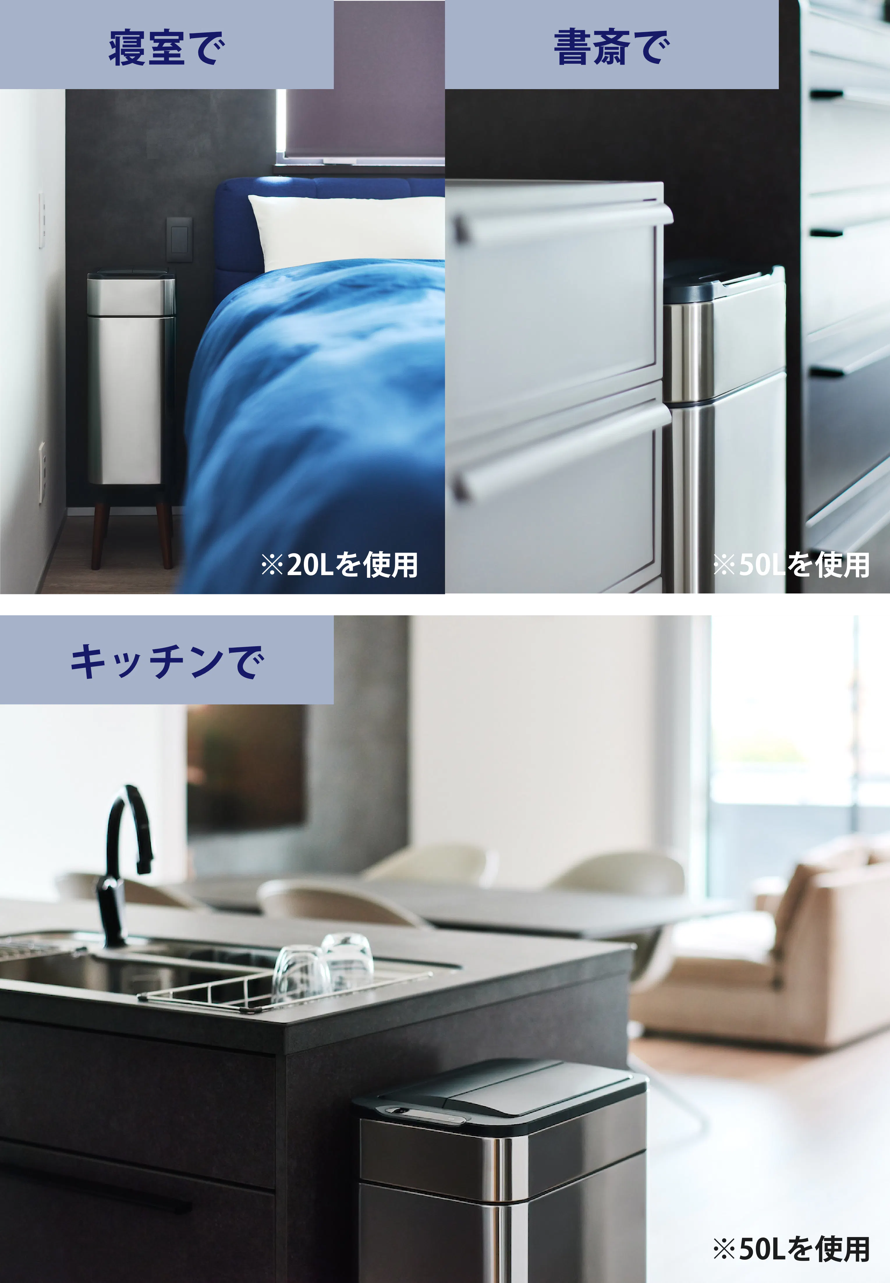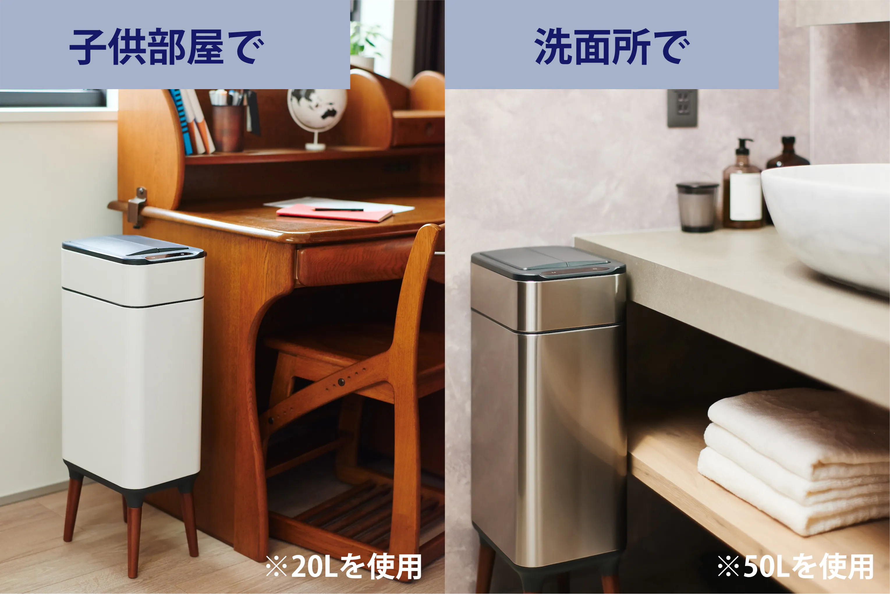 キッチン、リビング、寝室、洗面所。お好きな部屋に、どこにでも馴染む新しいゴミ箱です。