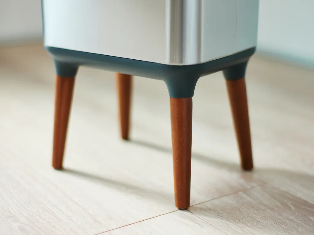 木製の脚が家具のように空間に馴染み、“いかにもゴミ箱"という存在感や圧迫感を和らげます。