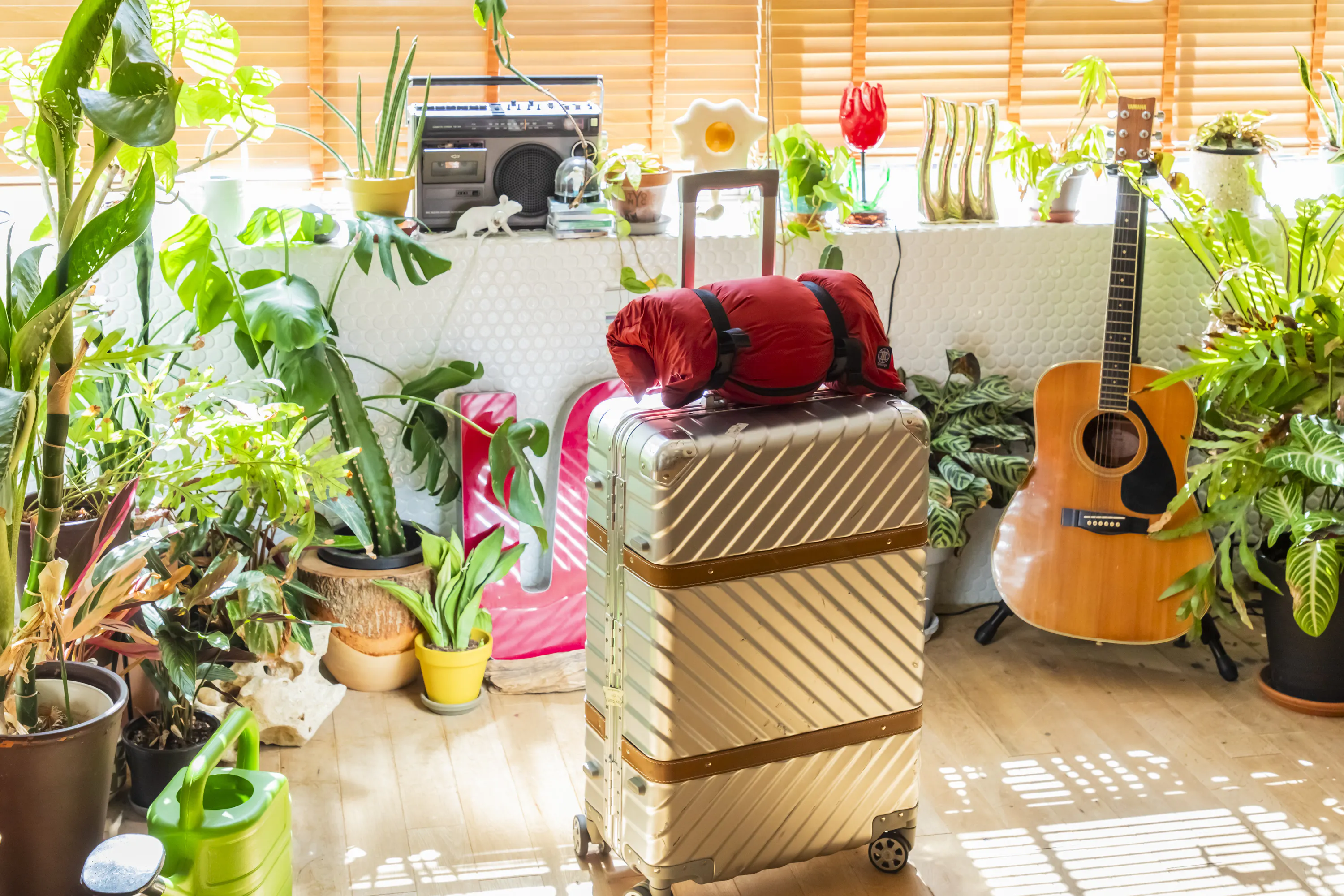 クッションカバーに収納したモモンガを円柱状に圧縮してザックの底に取り付けたりカバンに入れたりして一緒にお出掛けしやすくなりました。