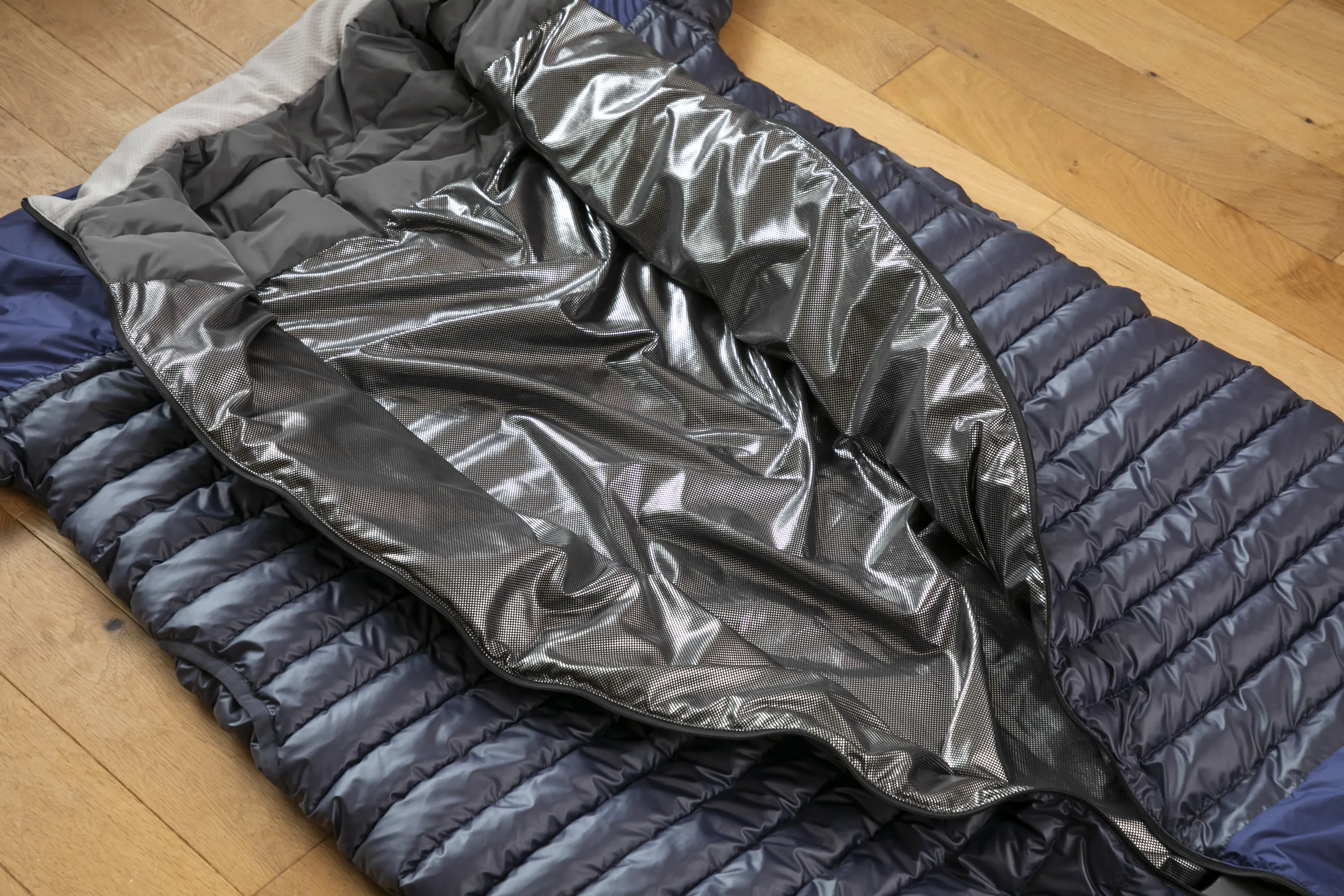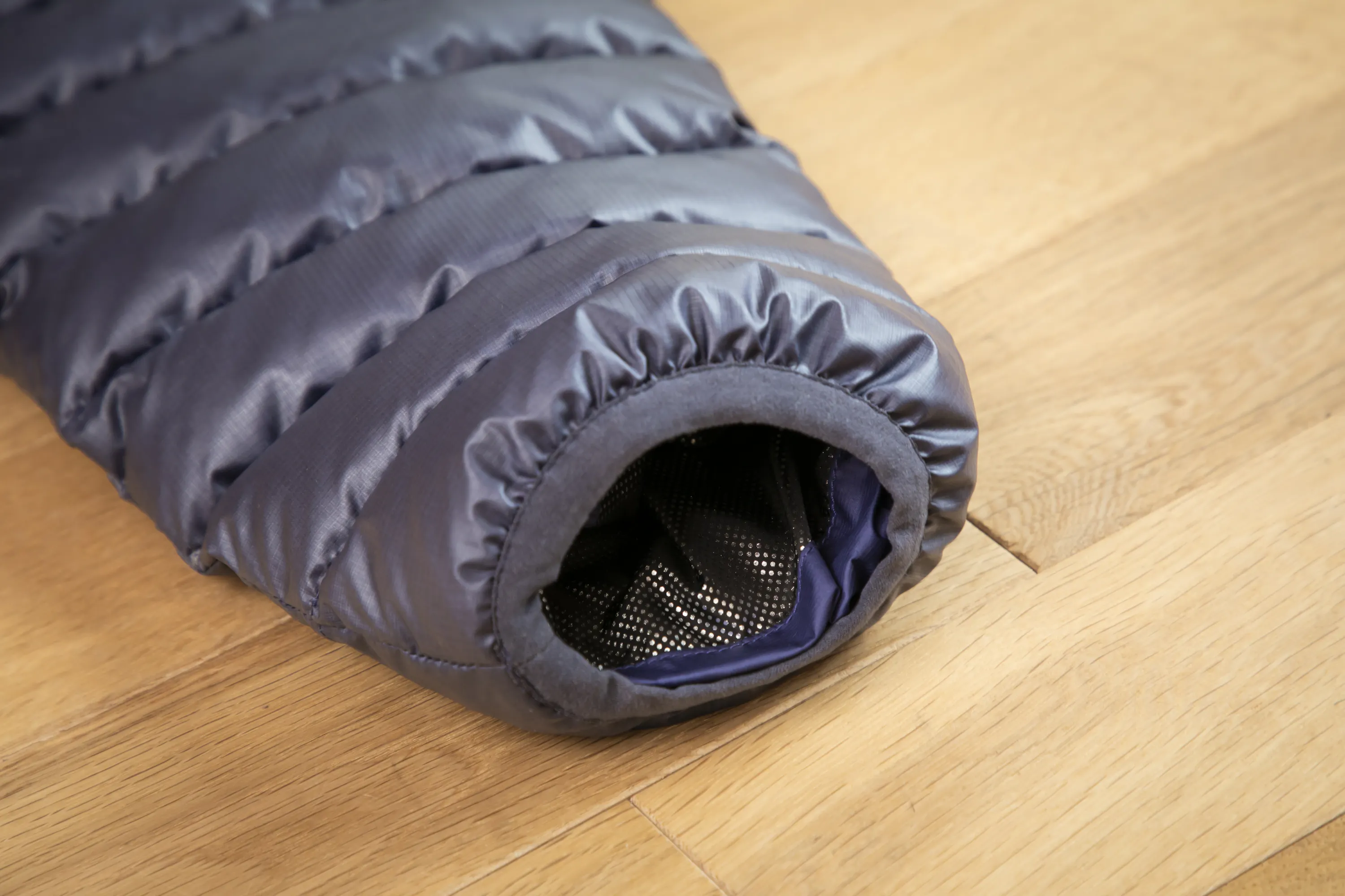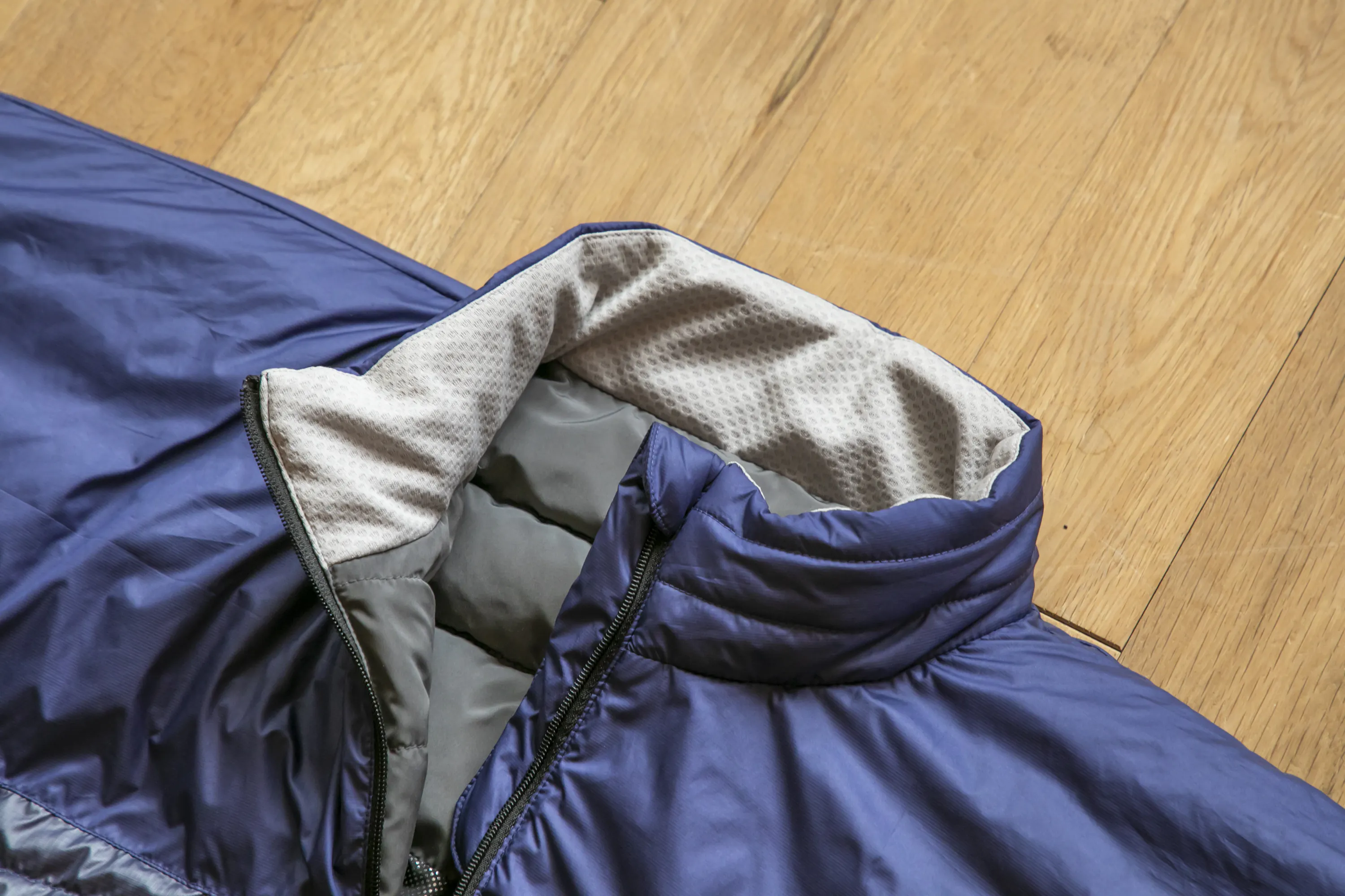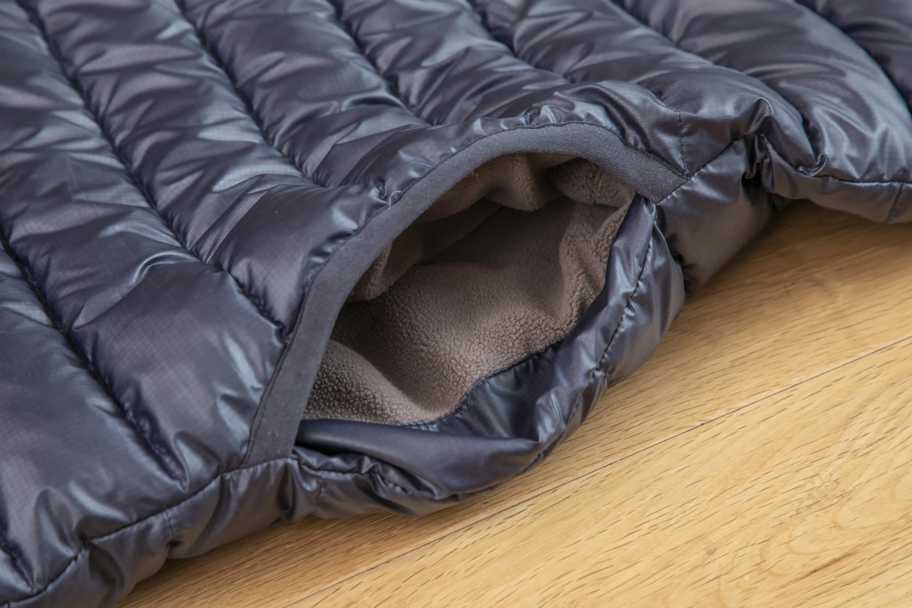 スタンダードモモンガにはシート状のサーモライト中綿を使用していますが、モモンガトラベラーではダウンのような形状のサーモライト中綿を使用しています。