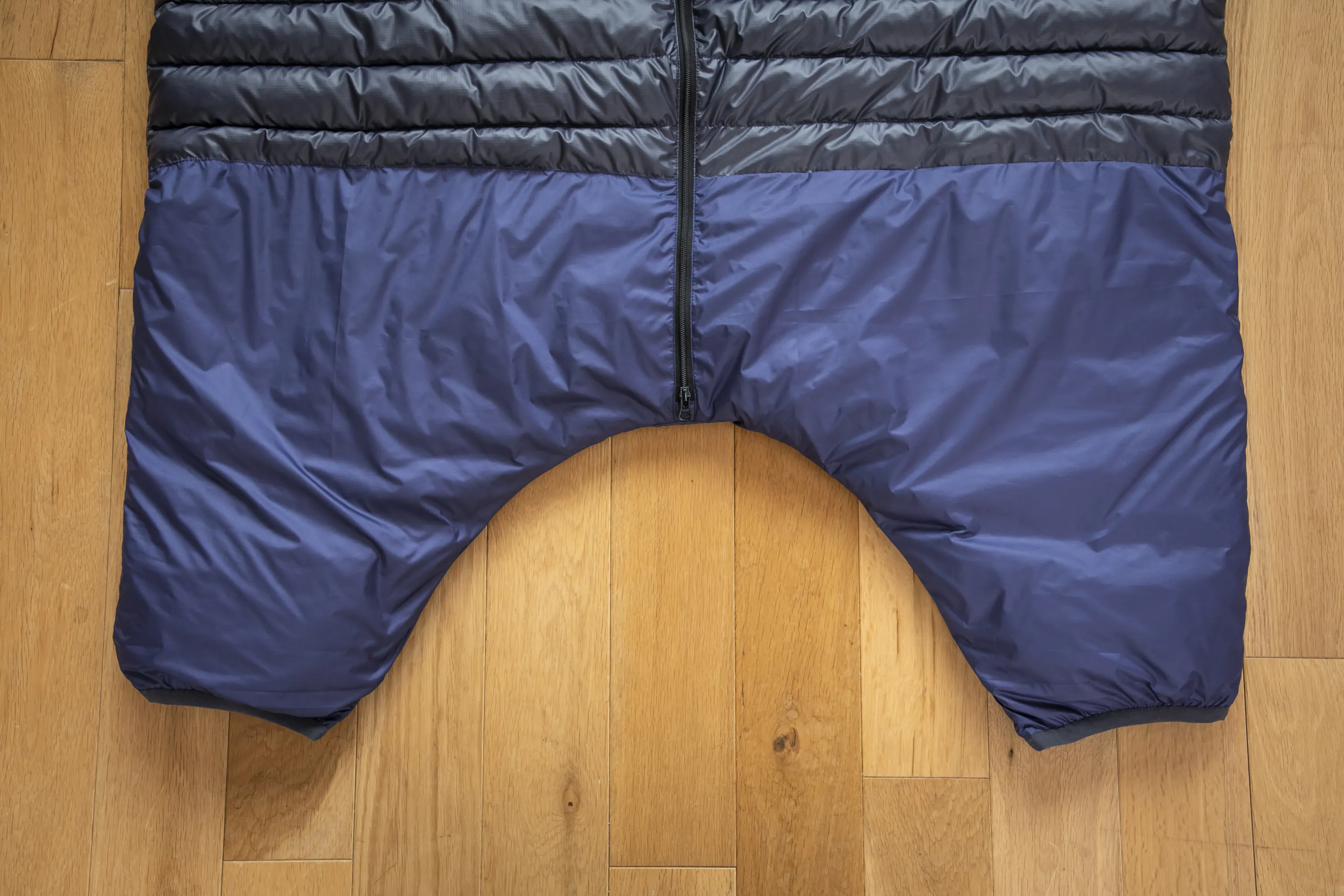 裾まで伸びたファスナーは下からも開くので足を出し入れでき、脱がずにトイレも対応できます。