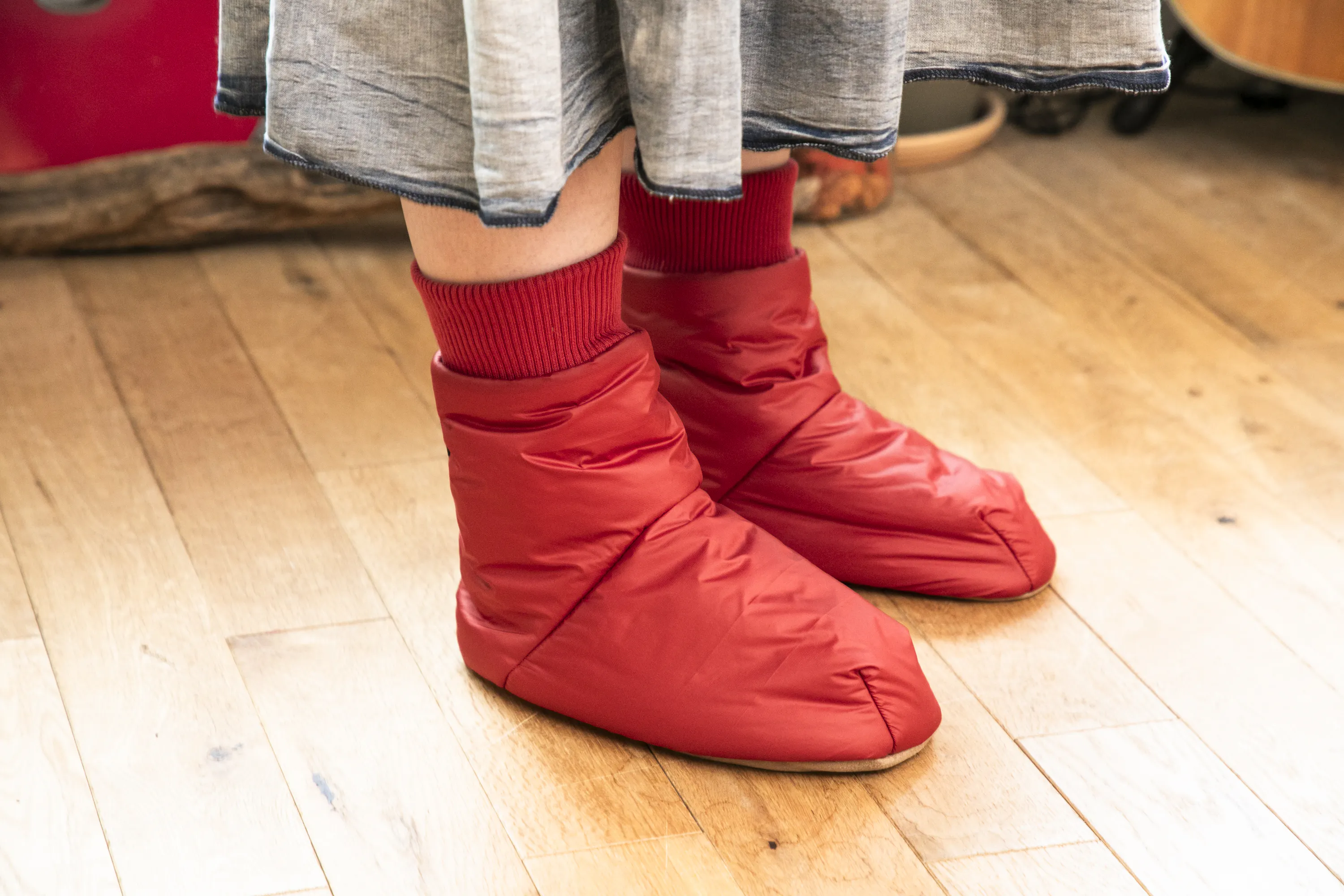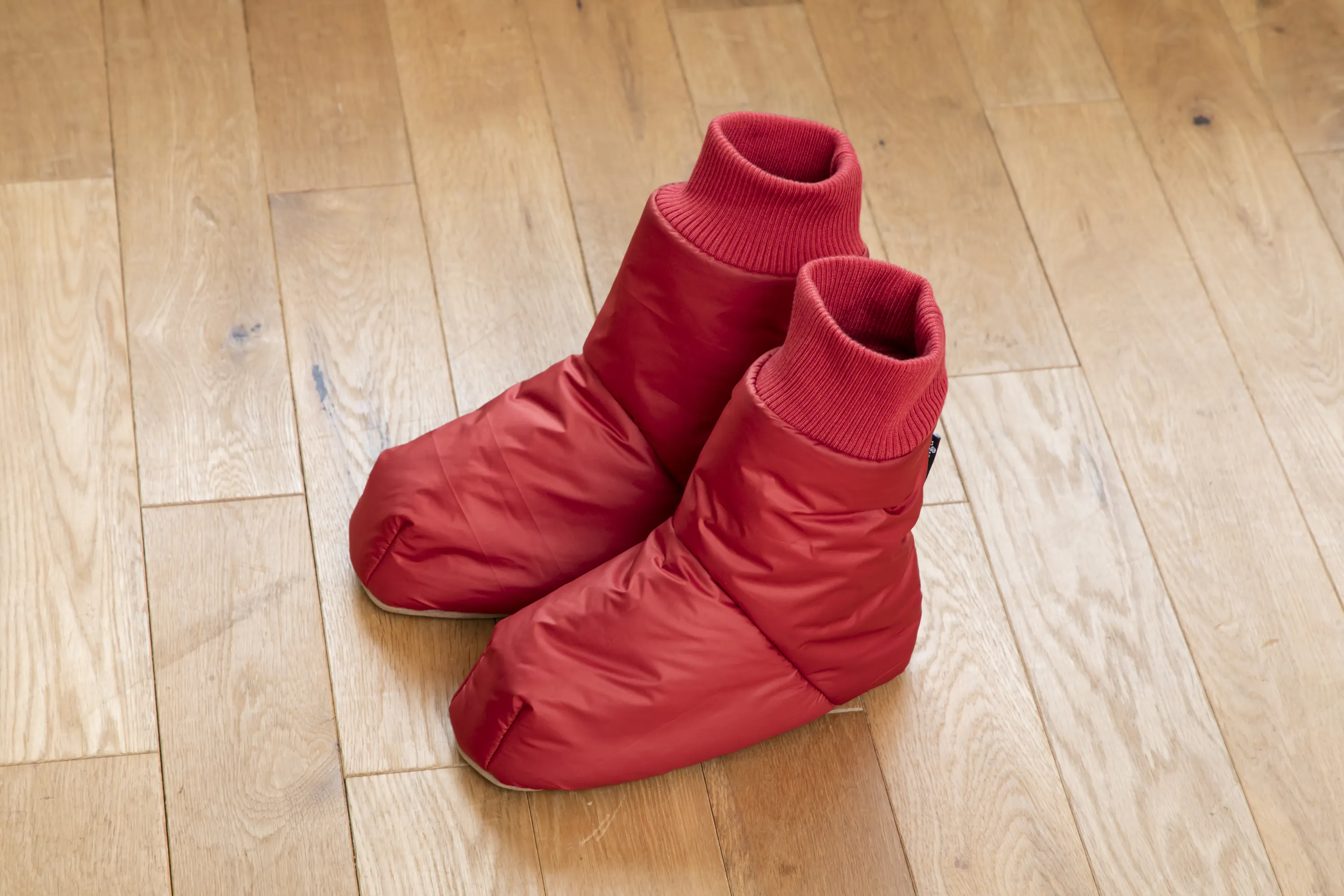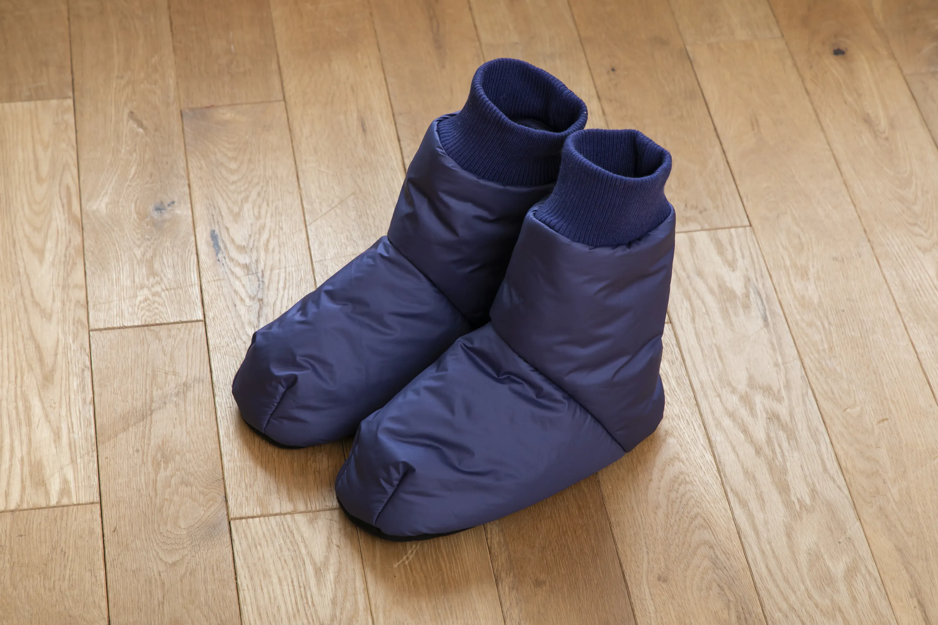 「ルームソックスシューズ」を作りました。アウトドアではテントの中で履くテントシューズが一般的ですが、もっと楽に履けるよう靴下風のデザインにしました。中綿には厚手のサーモライト中綿を使用し、裏地は保温裏地を使っています。内底はボアで暖かく、外底はポリエステルスウェードで滑りにくくなっています。とてもとても暖かいです。(外履き用ではありません。テント内や室内でご使用ください。)
