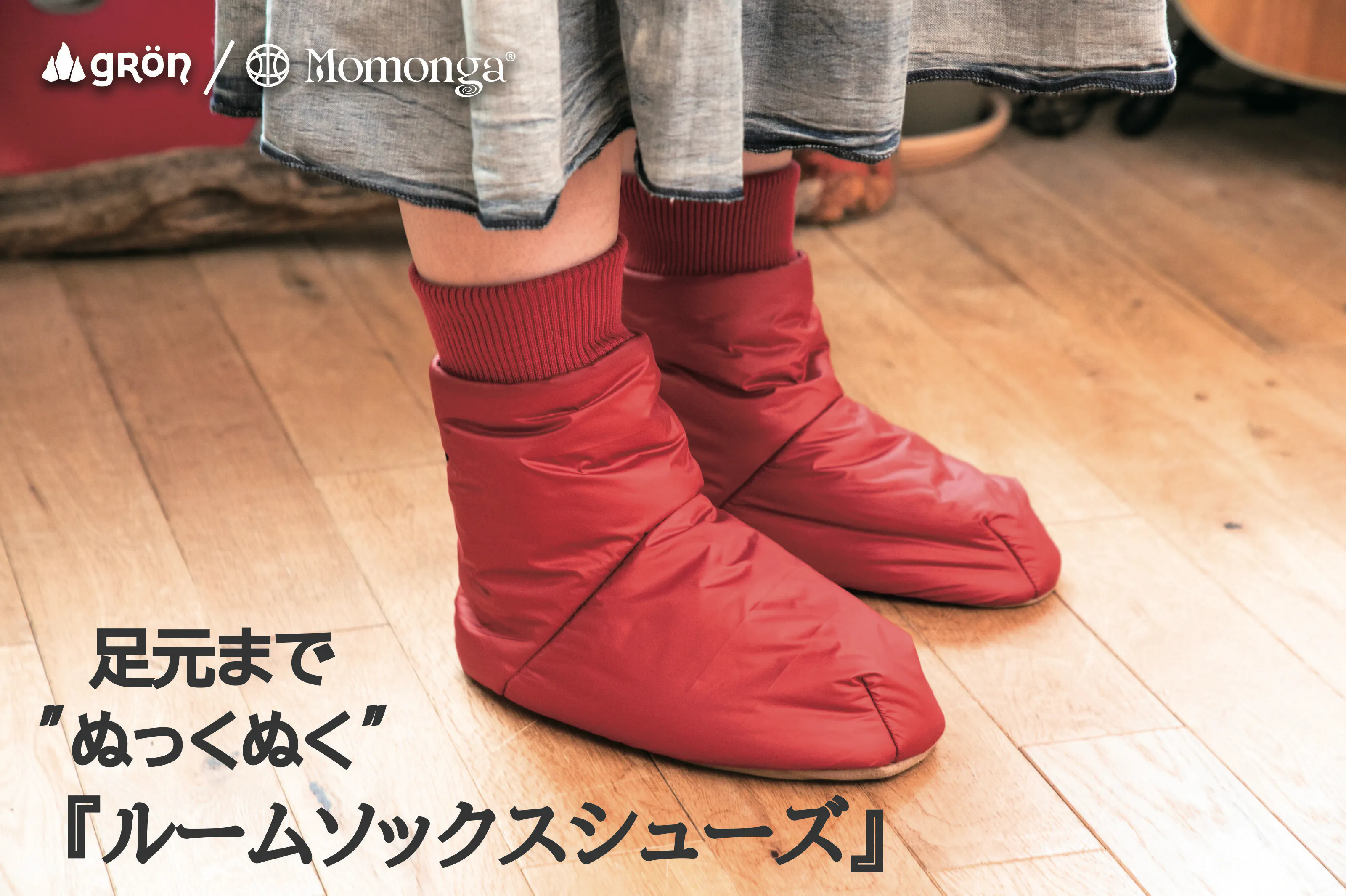 モモンガトラベラー本体と同じアルミニウム蒸着の保温裏地を使っています。内底にはボアを使っているので履いた瞬間から暖かく、外底はポリエステルスウェードで滑りにくくなっています。