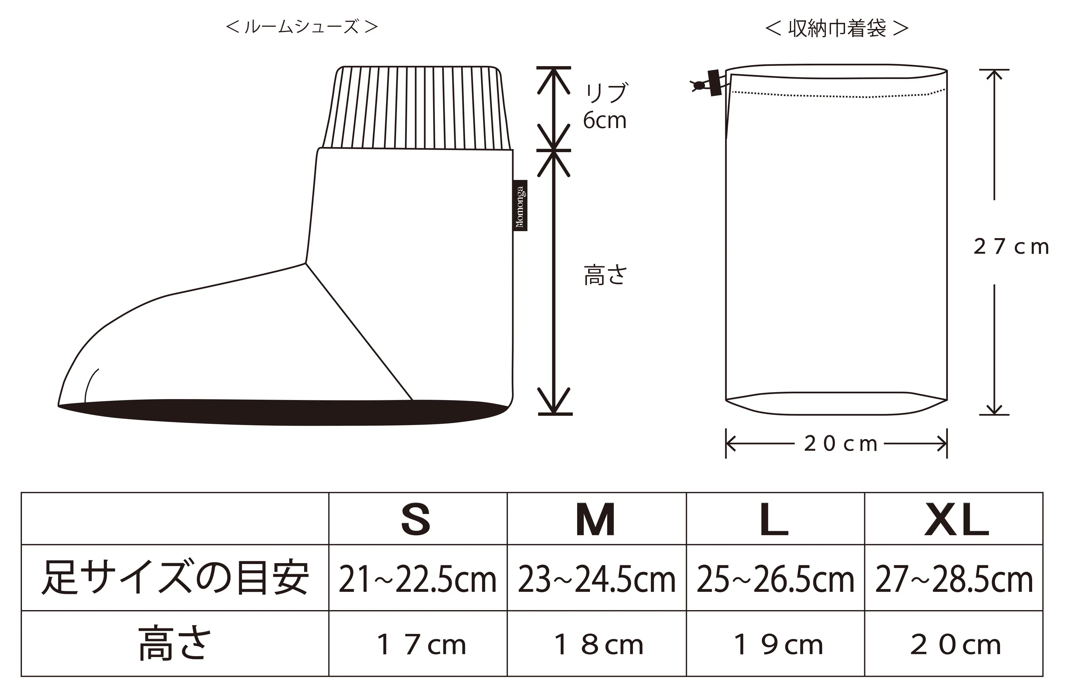 XS、S、M、L、XL の5サイズ