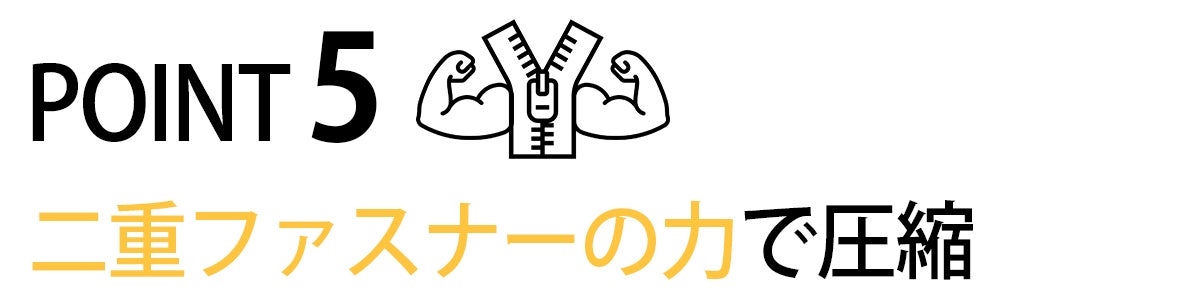 ファスナーで閉める過程で自然に空気が抜けて圧縮されます。