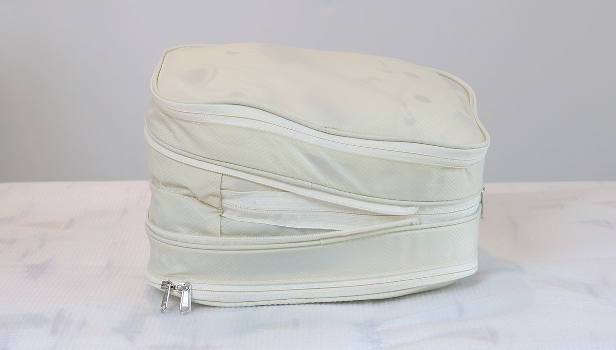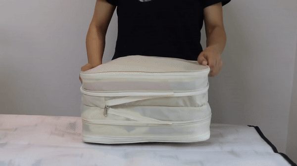 圧縮ファスナー一つで保管された衣類容量によって最大50%体積を減らします。