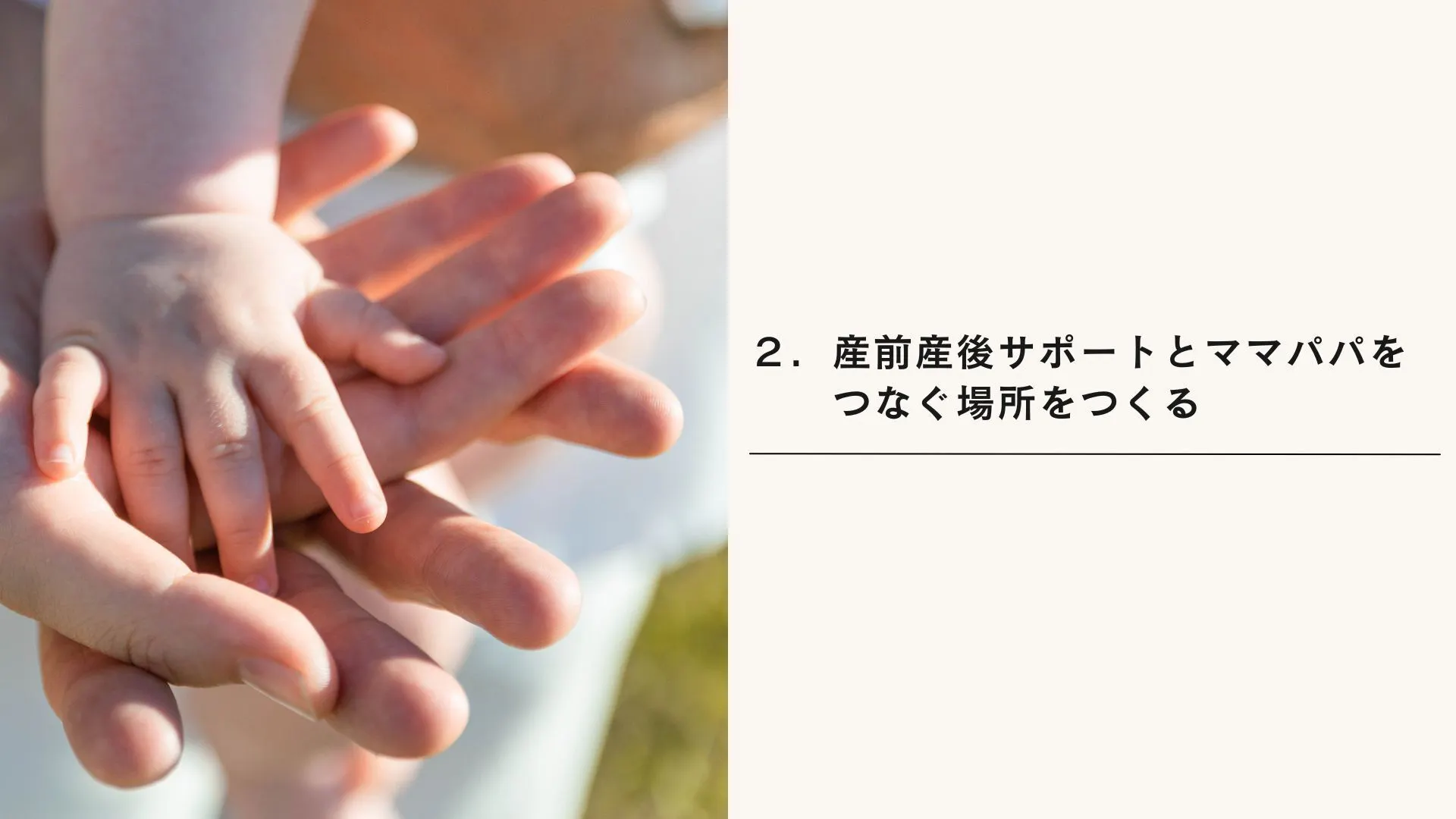 ●1つめは、「産後に本当に必要な知識を届けて、生活が回るしくみ」を届けること。