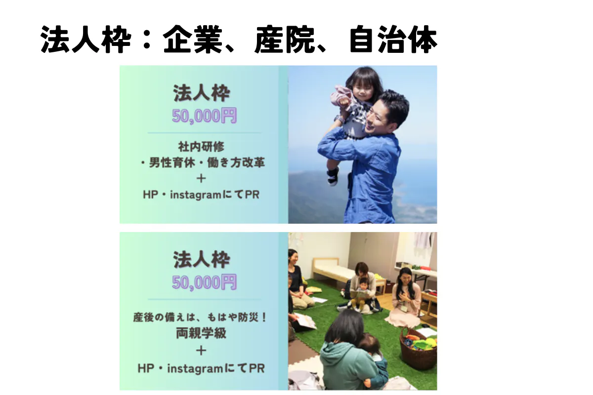 ・法人向けの両親学級・男性育休の研修などの提供