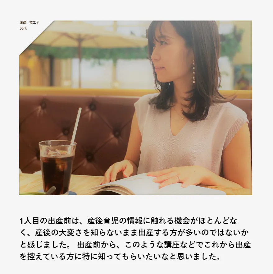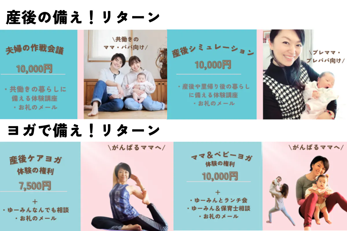 ・これから妊娠出産を考える方や、ママパパへの産後シミュレーション講座・育休復帰シミュレーション講座などの提供