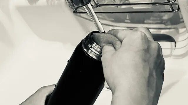 でも、HITCHなら上部も下部も分解することができるので、隅々までゴシゴシ洗うことができます。広口ボトルなので、手で底まで洗えるのもいいですね。