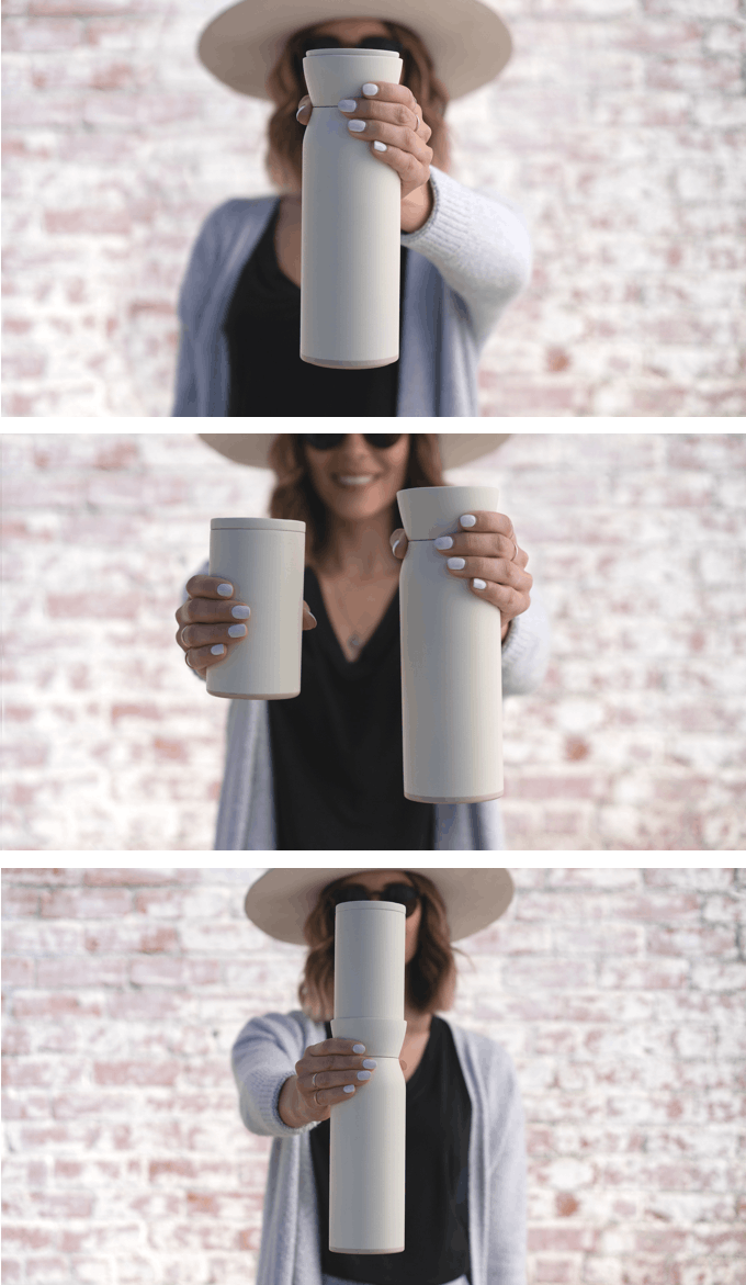 そのために、私たちはボトルやカップを簡単に持ち運び再利用できる、完璧なソリューションの開発に着手しました。外出時のライフスタイルに十分な量の水とコーヒーを持ち運べる優れたボトルでなければならないと考え、現在のスタイルにたどり着きました。