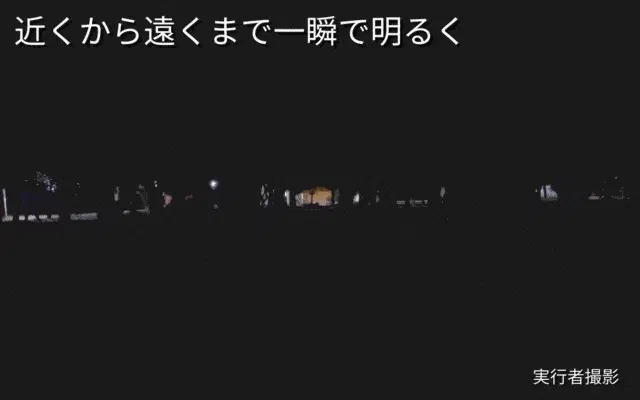 一瞬で遠くから近くまで明るく照らします。