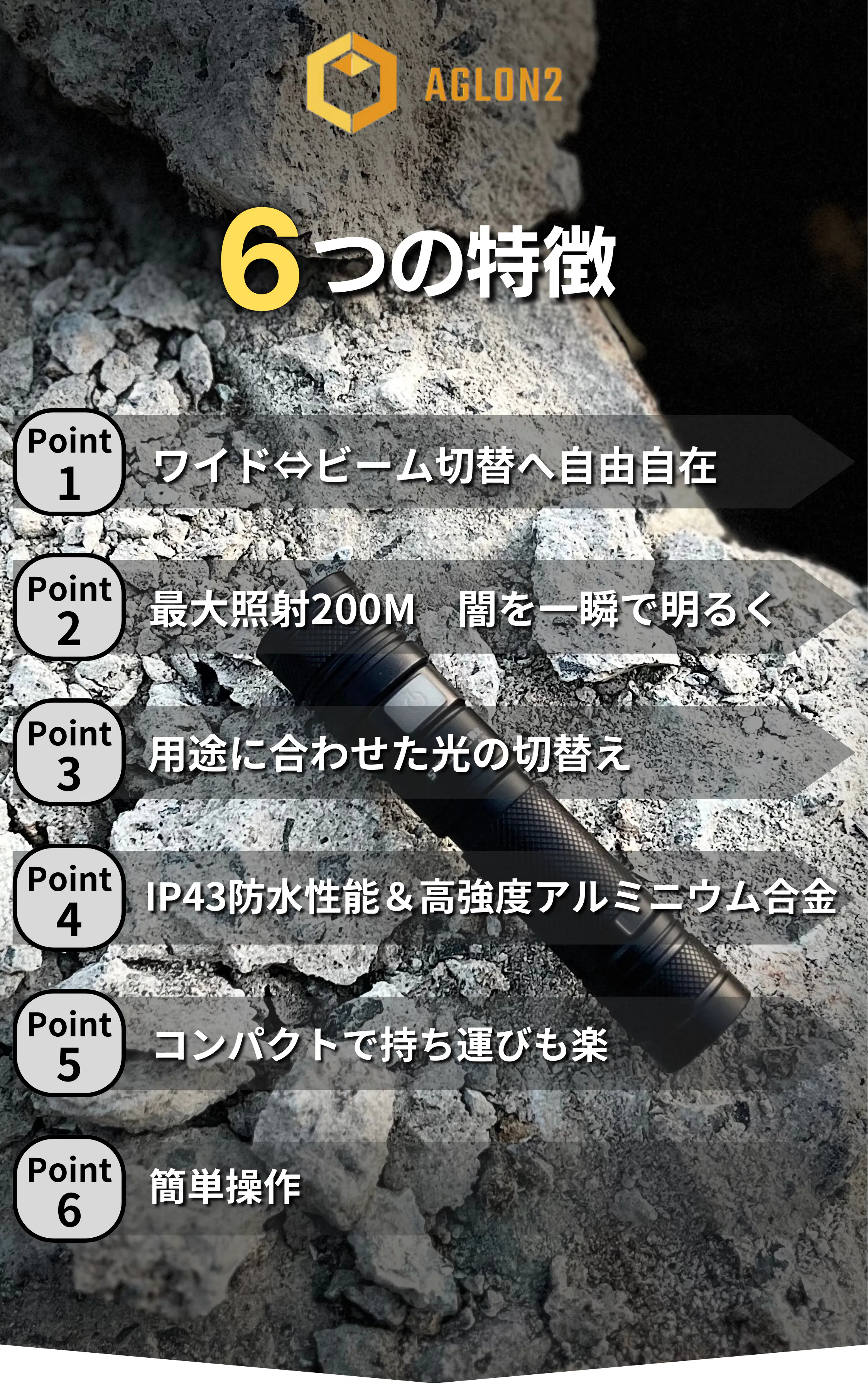 AGLON2は明るさと頑丈さを追求、様々な状況に対応するために生まれたライトです。是非手に取って使ってみてください。