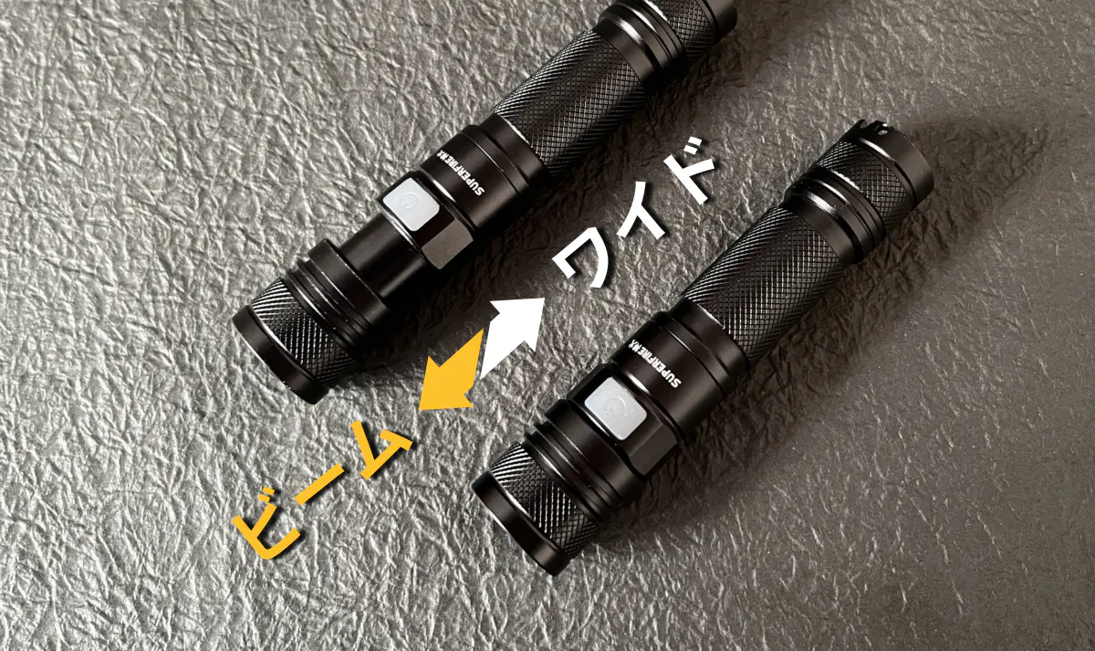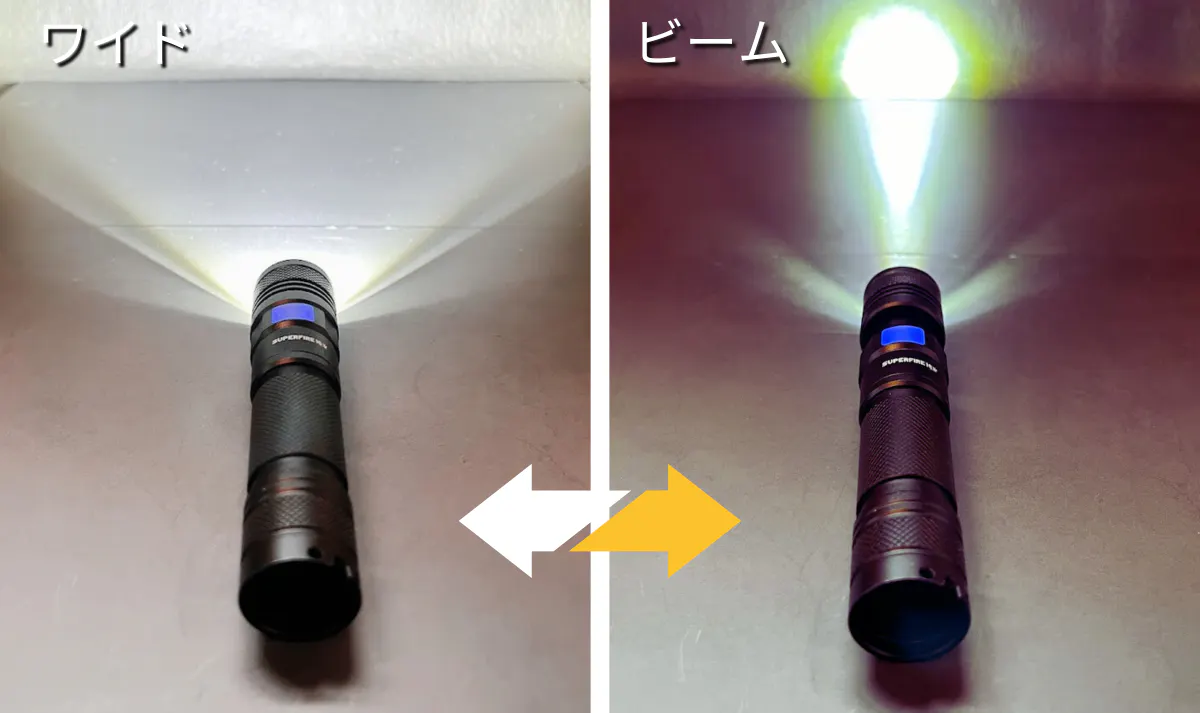 ワイドとビームの切り替えで暗闇を一瞬で明るくします。