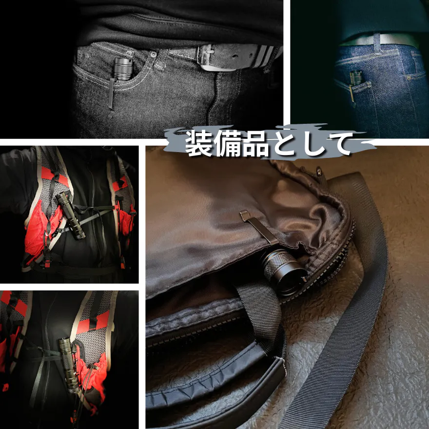 Wクリップでジーンズやバックパック、バックなどの様々な場所に掛けて持ち運ぶことができます。コンパクトなので、常に携帯が可能です。