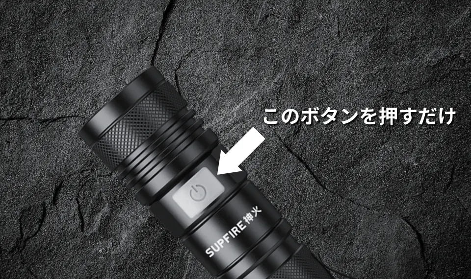 AGLON2は操作が簡単なサイドボタン式。通常のテールボタン式に比べてライトを持ち替えたり両手を使う必要無くスムーズに操作できます。