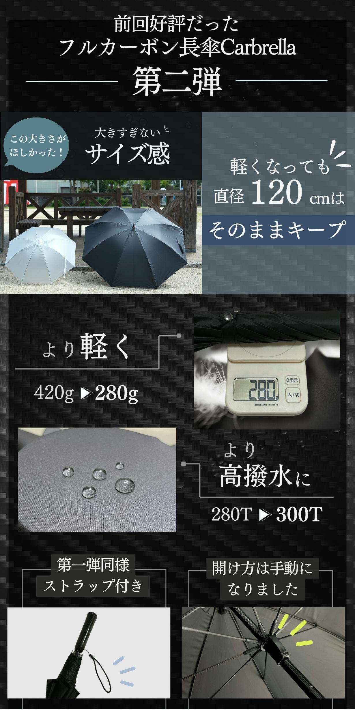 今回ご紹介するのはそんなお悩みを解決する、軽くて大きなカーボンファイバー製の長傘です!