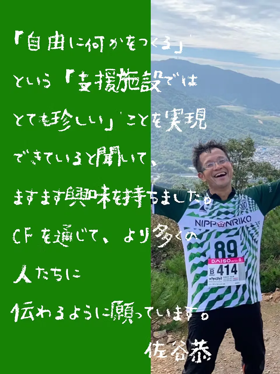 ”『とさちょうものがたり』のファンです。土佐町ならではの才能・個性が、美しいビジュアルときれいな文章で表現されています。障害者との協働の話も聞いていましたが、「自由に何かをつくる」という「支援施設ではとても珍しい」ことを実現できていると聞いて、ますます興味を持ちました。CFを通じて、より多くの人たちに伝わるように願っています。”