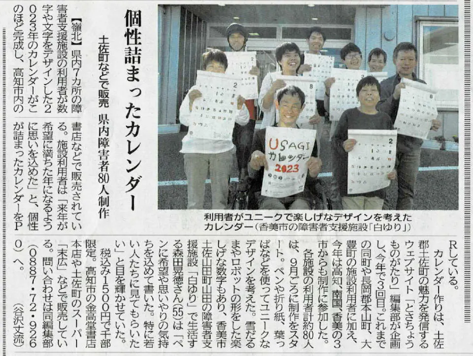 ”障害者の皆さんの楽しい表現活動がお金を生み、やりがいになり、社会とつながっていく。このカレンダーづくりは、「とさちょうものがたり」が続けている素敵なものづくりの仕組みです。高知新聞も意義を感じ、これまで何度も取材して紹介してきました。CFを通じて、より多くの方に触れてほしいと思います。”