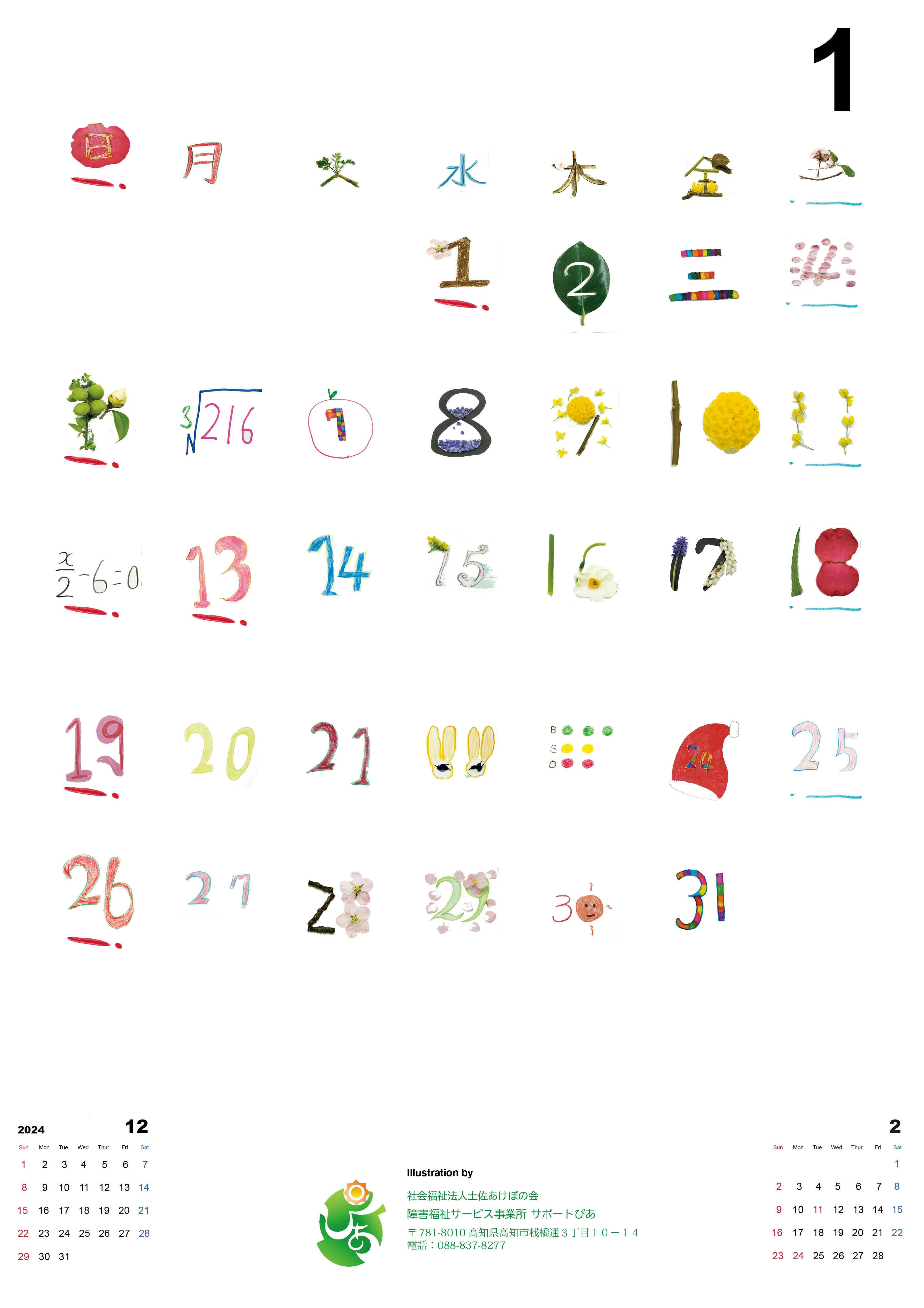 ● 風のカレンダー(障がいのある方々が描いた数字や絵でカレンダーを制作販売)